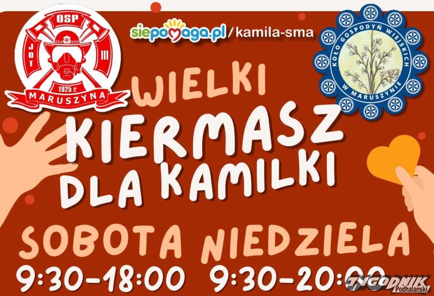 Z pomocą dziewczynce ruszyło też Koło Gospodyń Wiejskich i Ochotnicza Straż Pożarna w Maruszynie, którzy wespół zapraszają w najbliższy weekend 21-22.10 do udziału w „Wielkim Kiermaszu dla Kamilki”. Z tej okazji strażacy udostępniają swoją remizę, zatem przybywajcie. W sobotę w godzinach 9.30-18, a w niedzielę od 9.30 do 20.