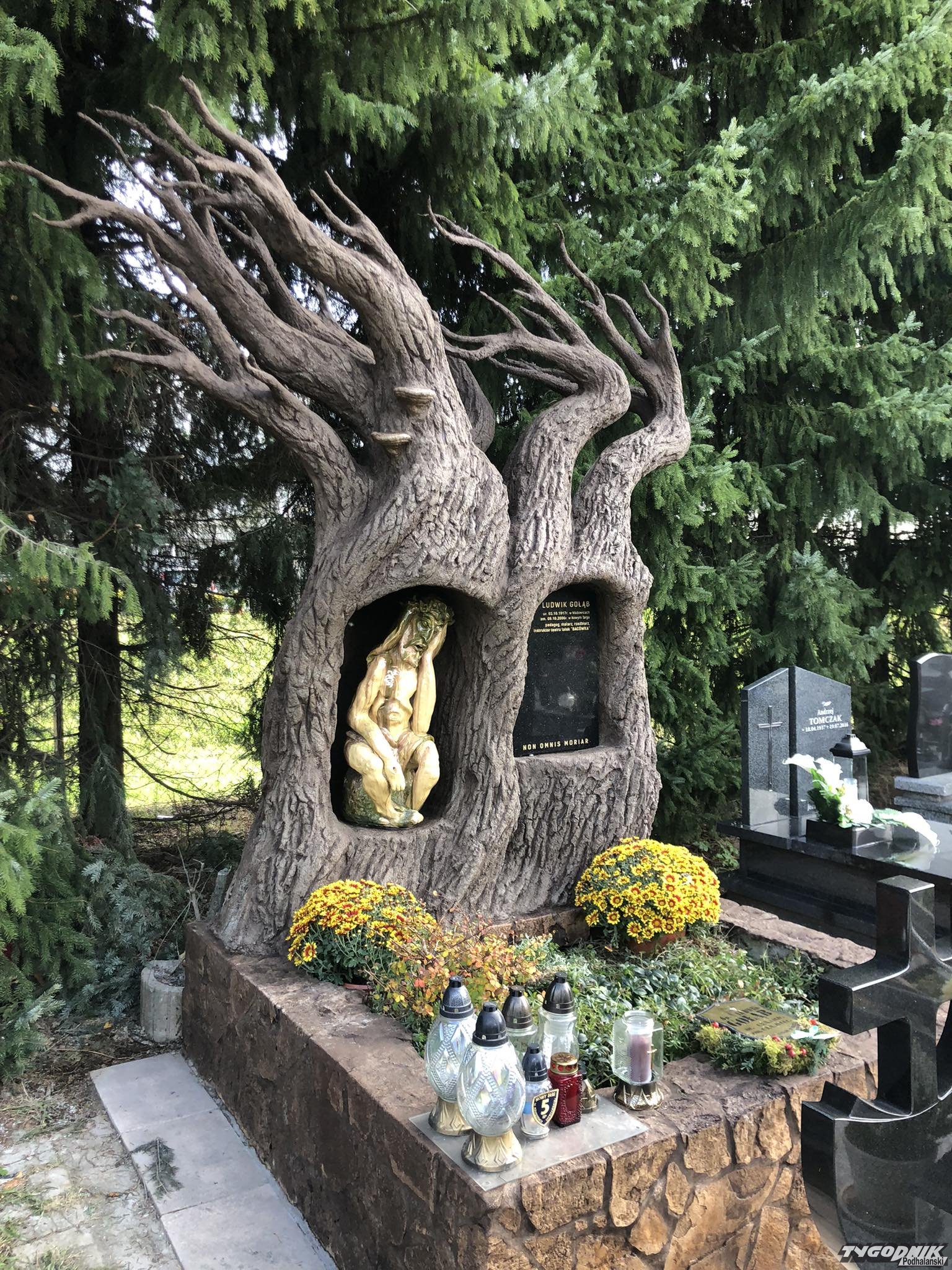 Na nowotarskim cmentarzu stanął nietypowy pomnik. To grób Ludwika Gołąba, zmarłego 17 lat temu artysty. Autorem oryginalnego postumentu jest Gabriel Szyrszeń.
