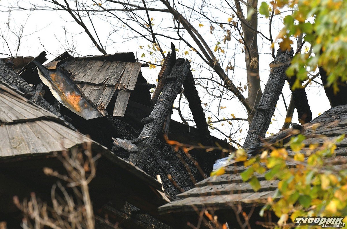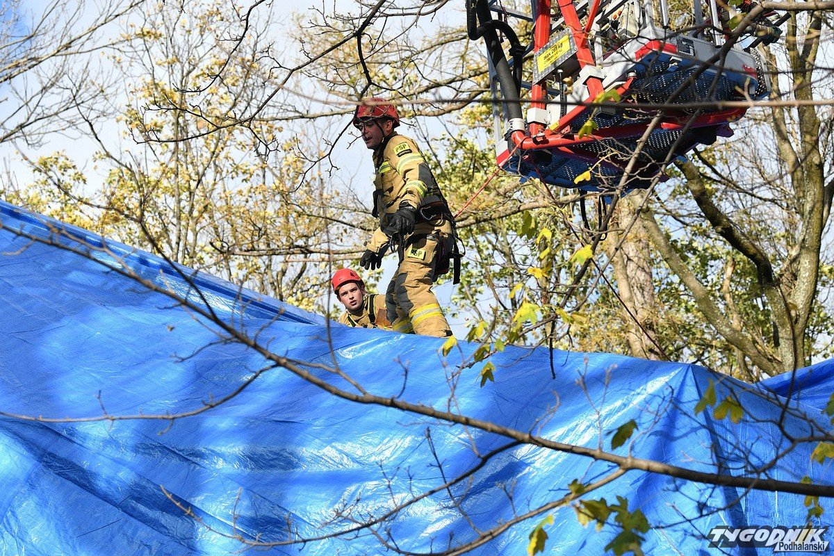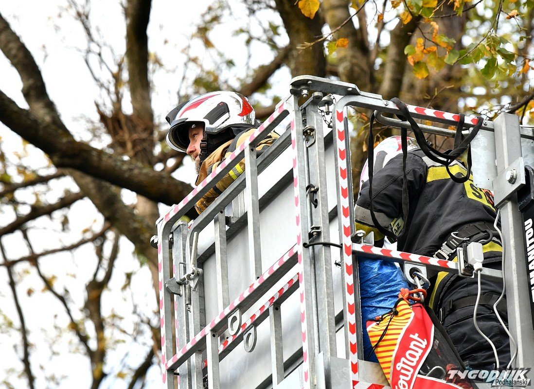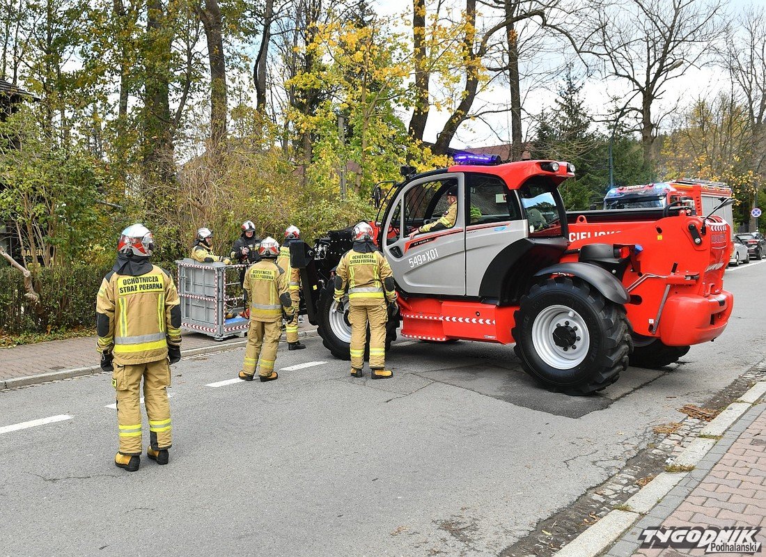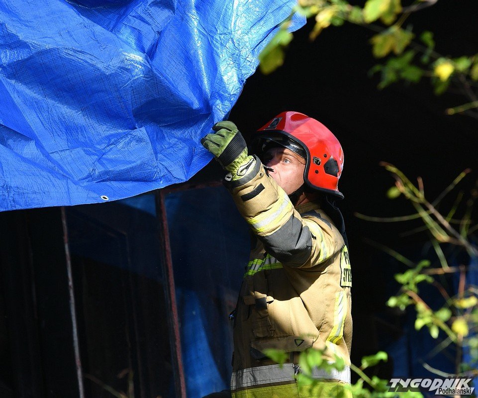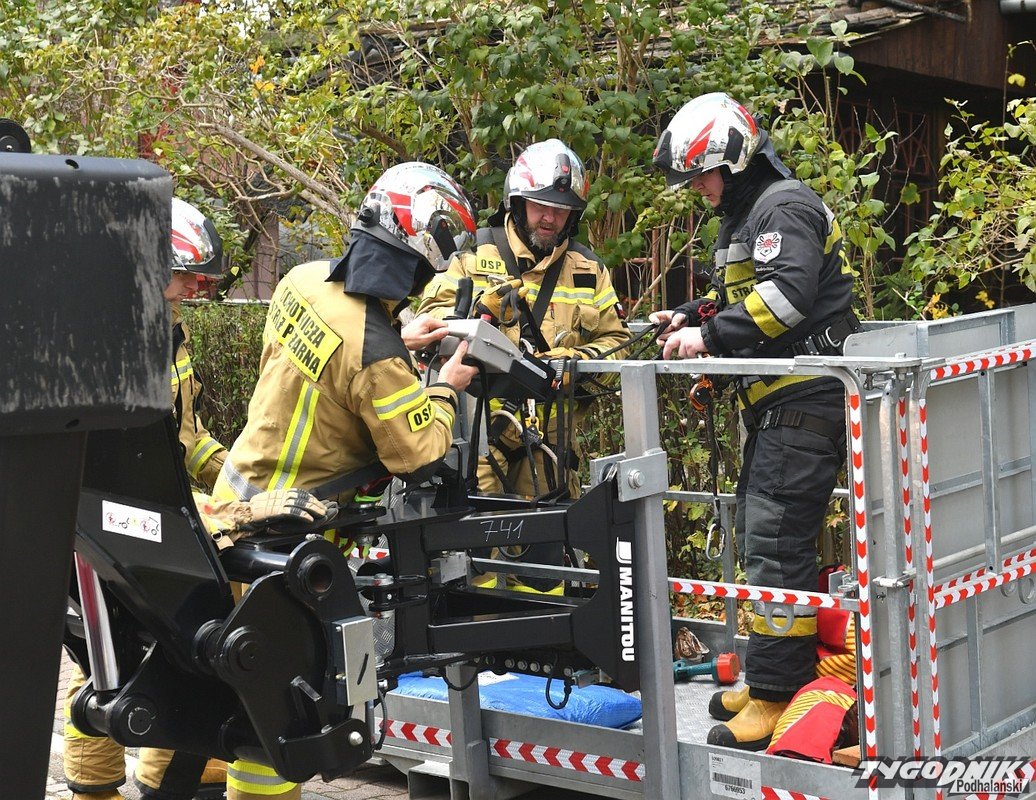 Strażacy zabezpieczają dziś dach zabytkowego Domu Doktora, którego poddasze spaliło się we wtorkowy wieczór w Zakopanem.