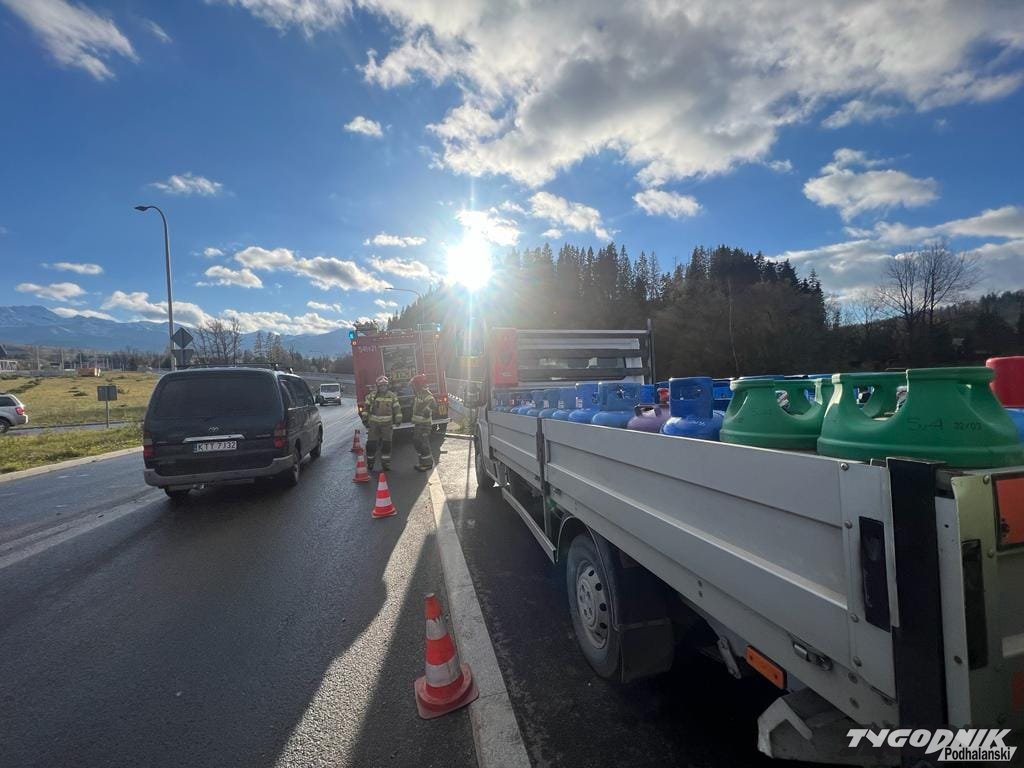 Do kolizji doszło ok. godz. 14 na węźle drogowym w Poroninie.