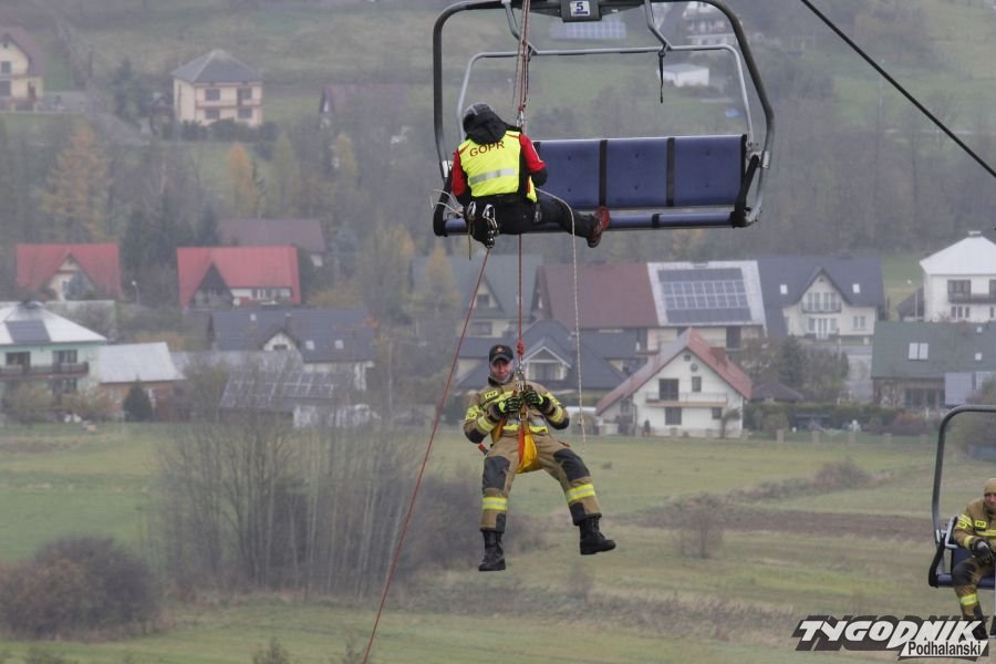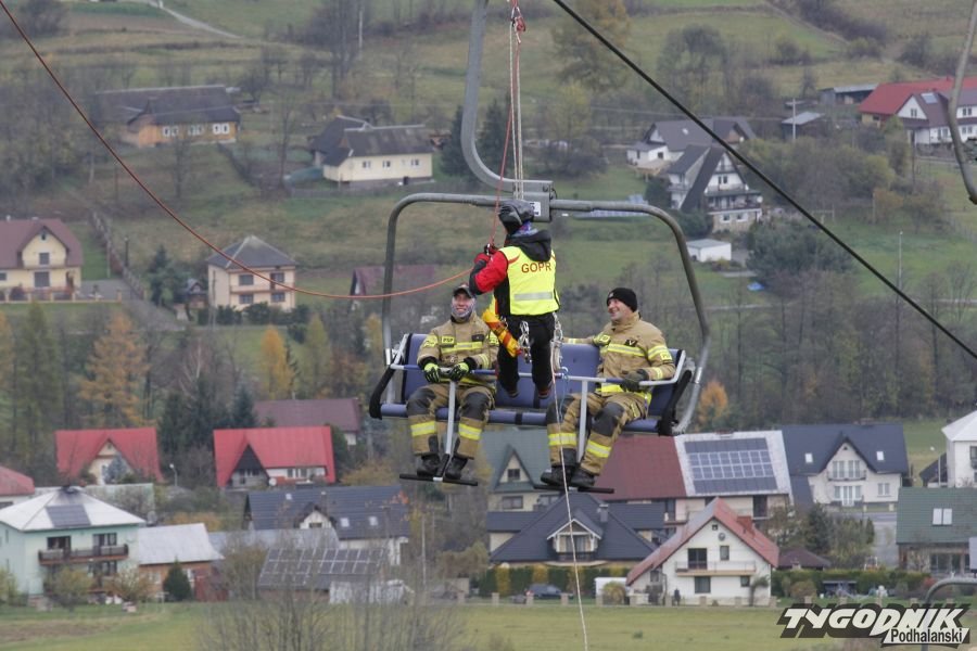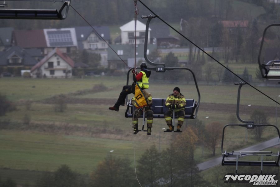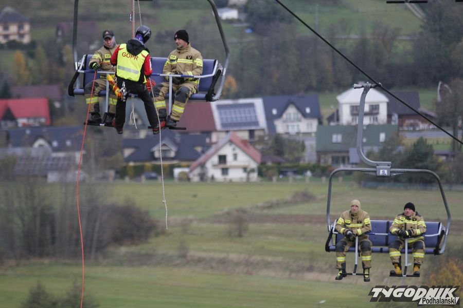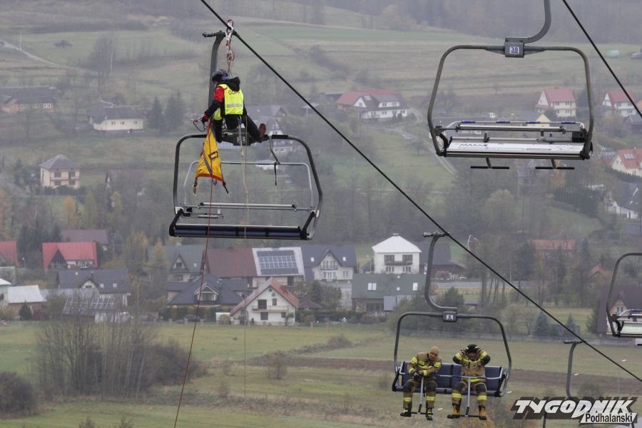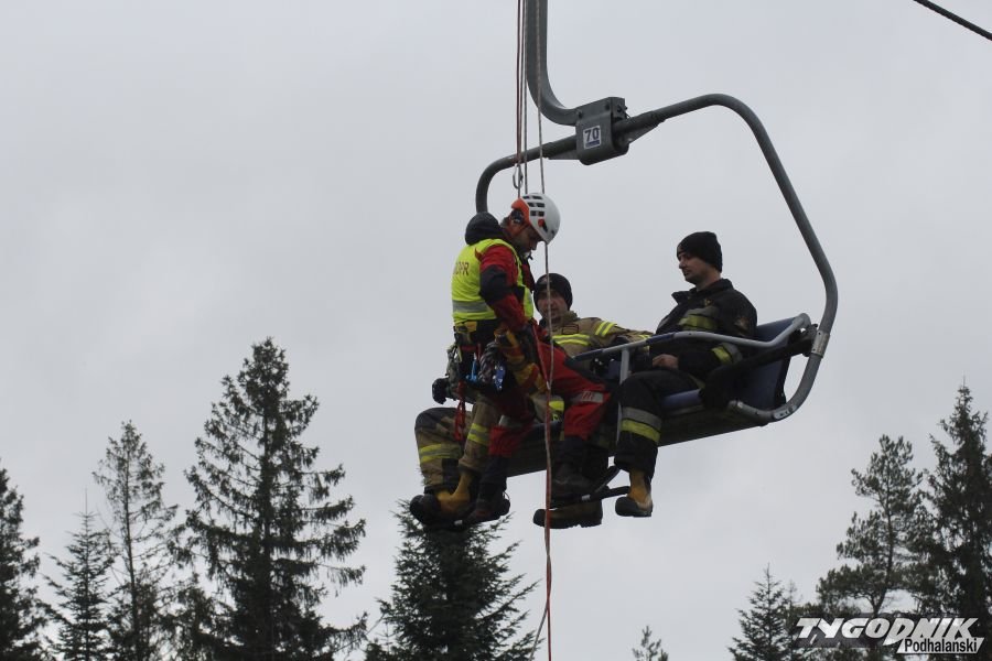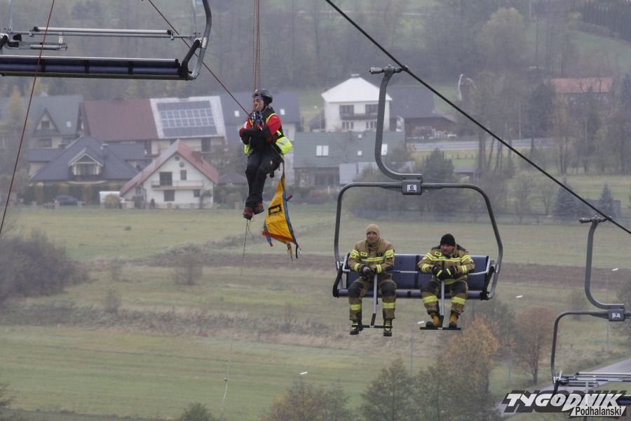 Strażacy i ratownicy GOPR ćwiczyli na wyciągu narciarskim (WIDEO), (Zdjęcia)
