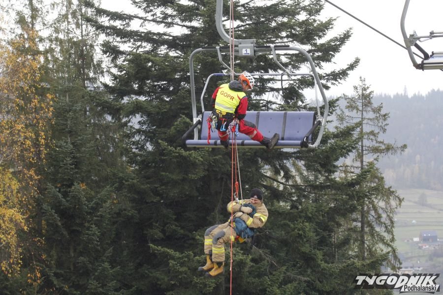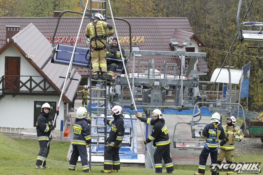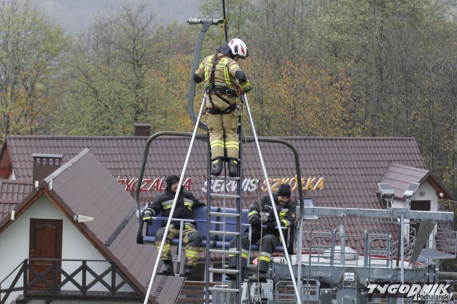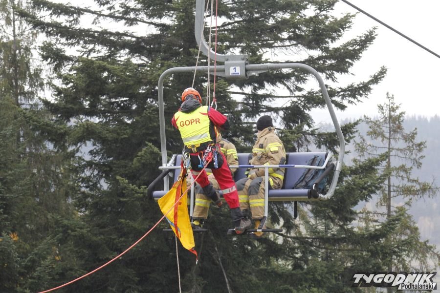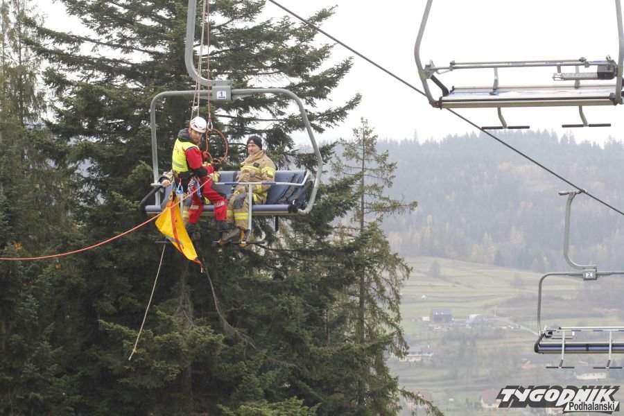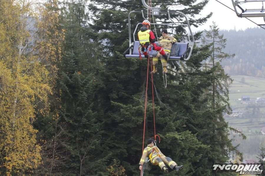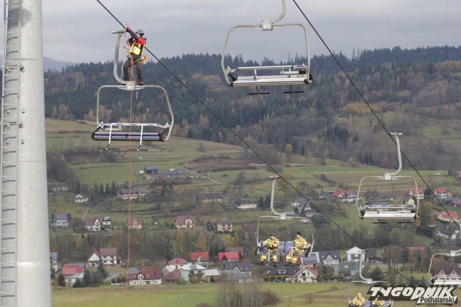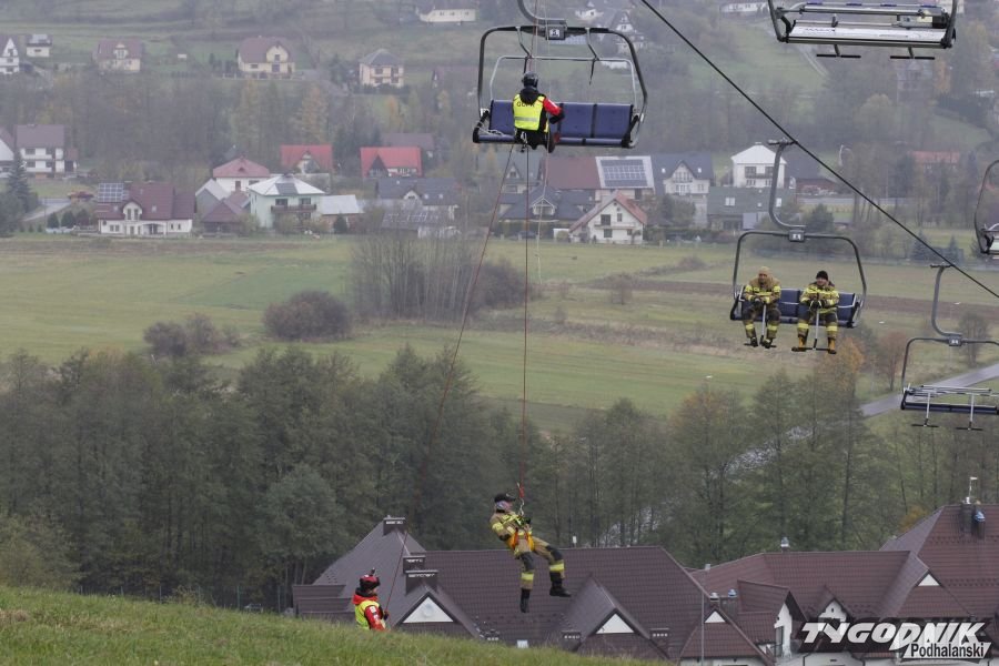Strażacy i ratownicy GOPR ćwiczyli na wyciągu narciarskim (WIDEO), (Zdjęcia)