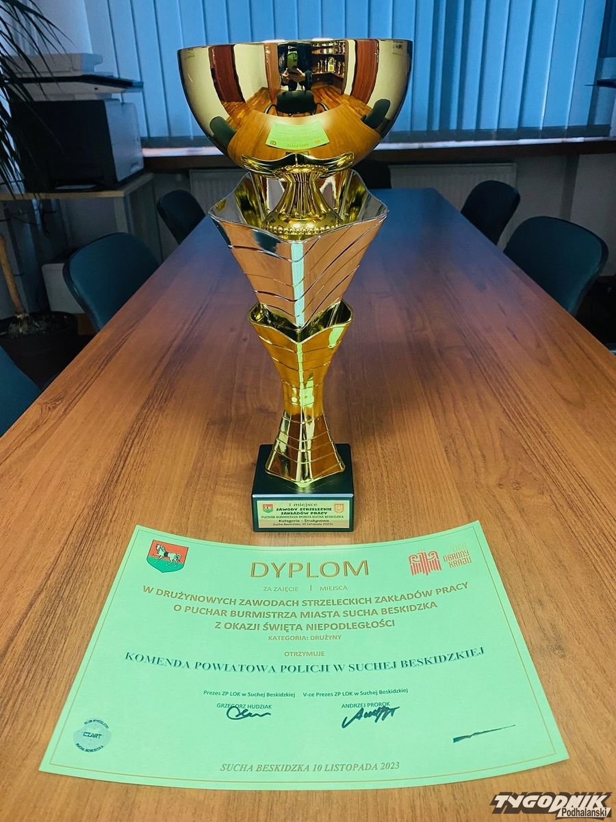 Umiejętności strzeleckie suskich policjantów przyniosły im zwycięstwo w Drużynowych Zawodach Strzeleckich Zakładów Pracy z okazji Święta Niepodległości.