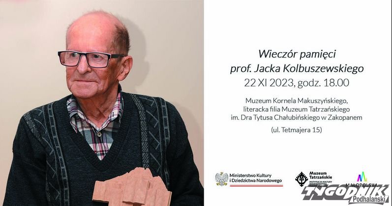 W środę 22.11 Muzeum Tatrzańskie zaprasza na wieczór pamięci prof. Jacka Kolbuszewskiego - historyka literatury specjalizującego się w tematyce górskiej, taternika, a także wielkiego przyjaciela Muzeum.