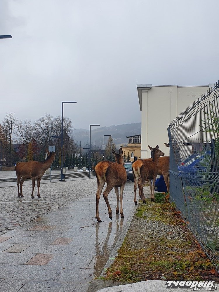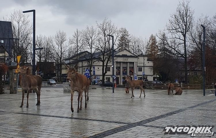 Tym razem stado łani wybrało się na spacer na Plac Niepodległości.