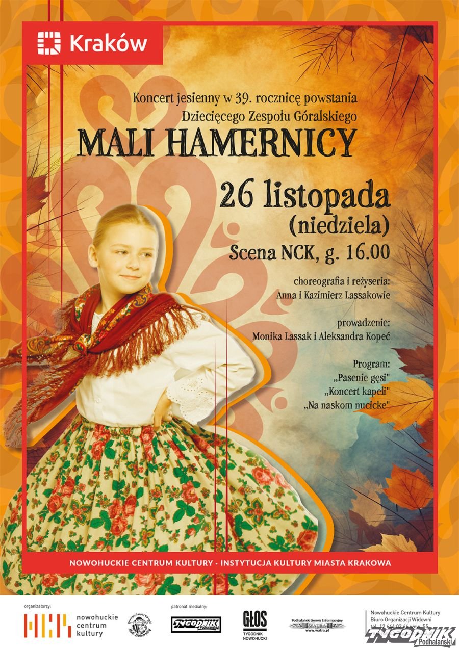 Tym razem zapraszamy do Nowohuckiego Centrum Kultury w Krakowie na dawkę prawdziwego folkloru prosto ze Skalnego Podhala w wykonaniu Dziecięcego Zespołu Góralskiego MALI HAMERNICY.