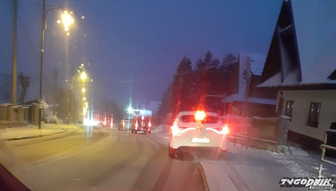 Kolizja w Bukowinie. Samochody stoją na śliskiej drodze w Bukowinie Tatrzańskiej