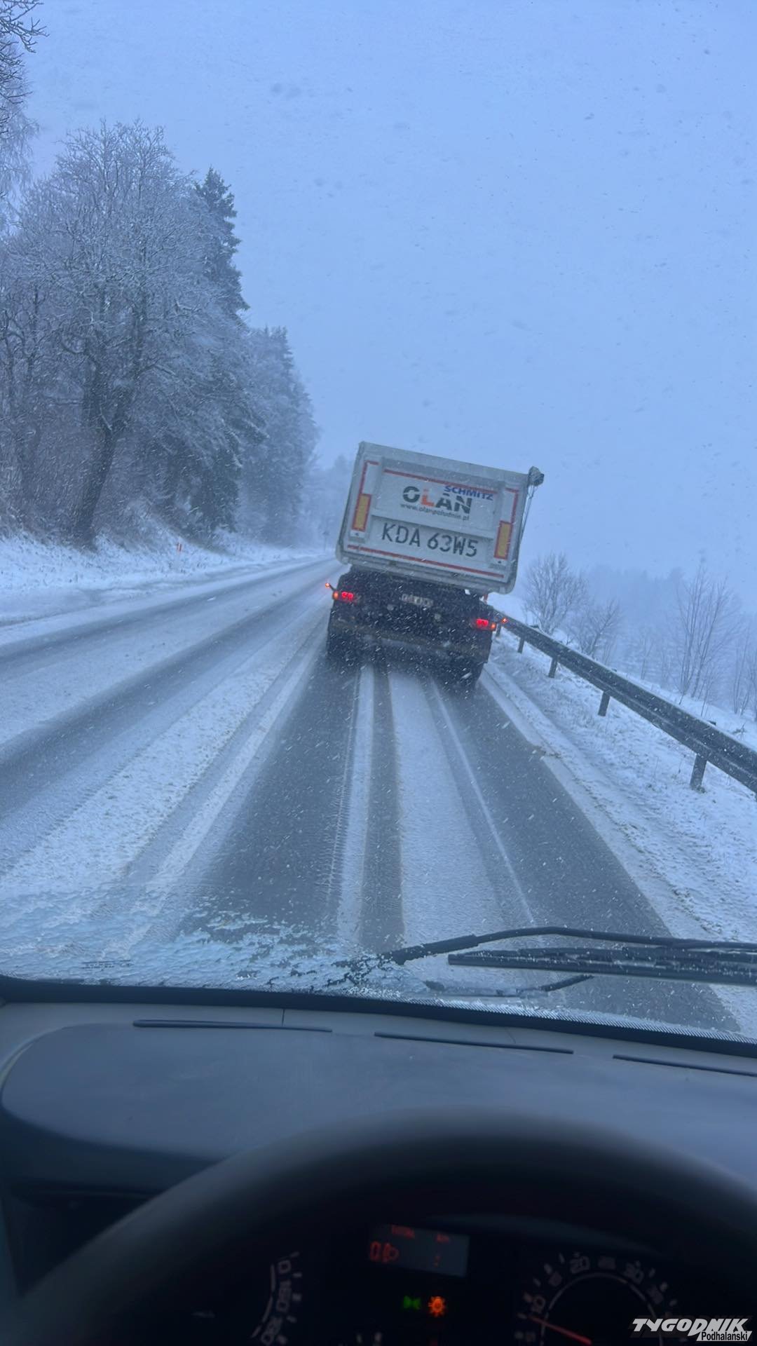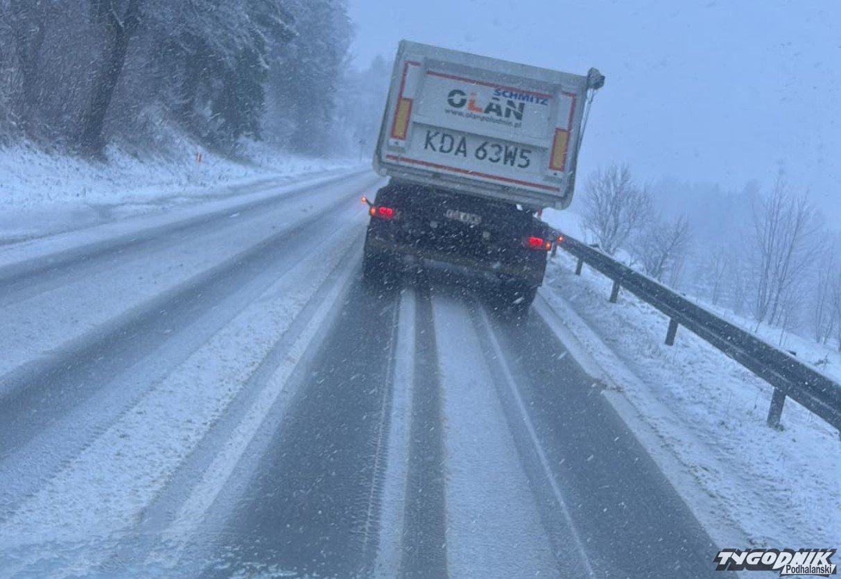 Po nocnych opadach śniegu, górski odcinek zakopianki pomiędzy Rdzawką a Klikuszową pokrył się śniegiem. Jest bardzo ślisko a śniegu ciągle przybywa. Ciężarówki ślizgają się na podjazdach. Przypomnijmy, że w weekend temperatura ma jeszcze spaść i warunki z pewnością nie poprawią się. Uważajcie!
