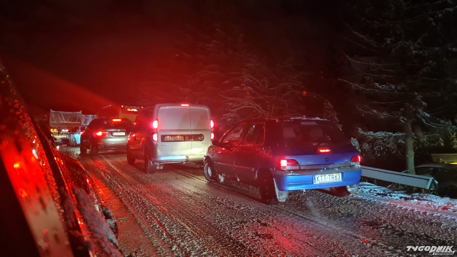Wyjazd z Zakopanego też kompletnie zakorkowany. Na Ustupie autobus na poboczu (WIDEO)