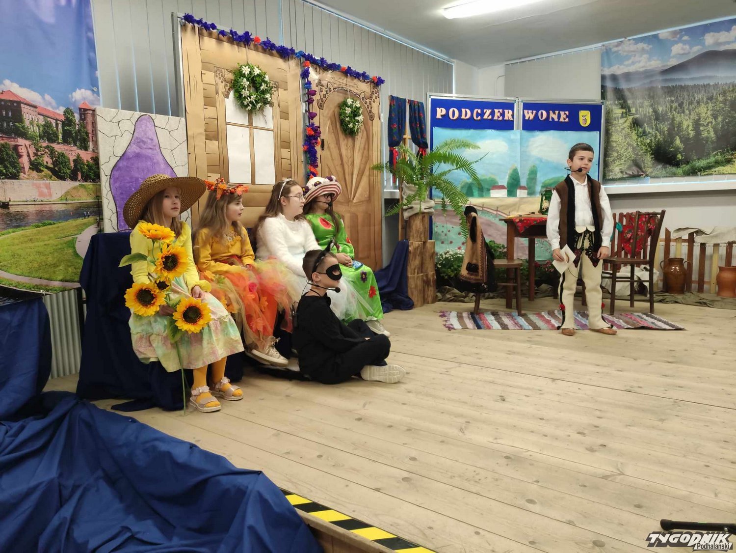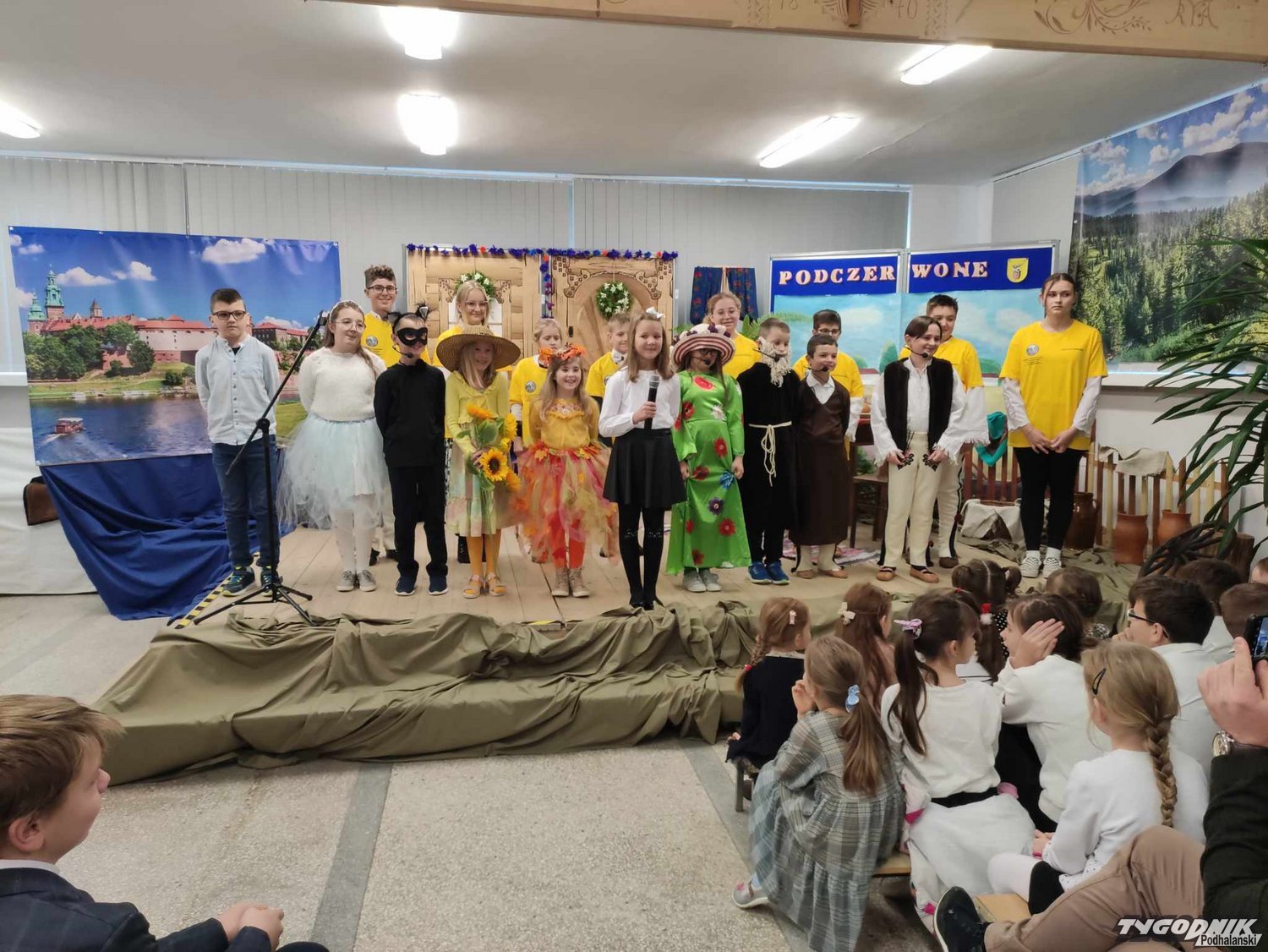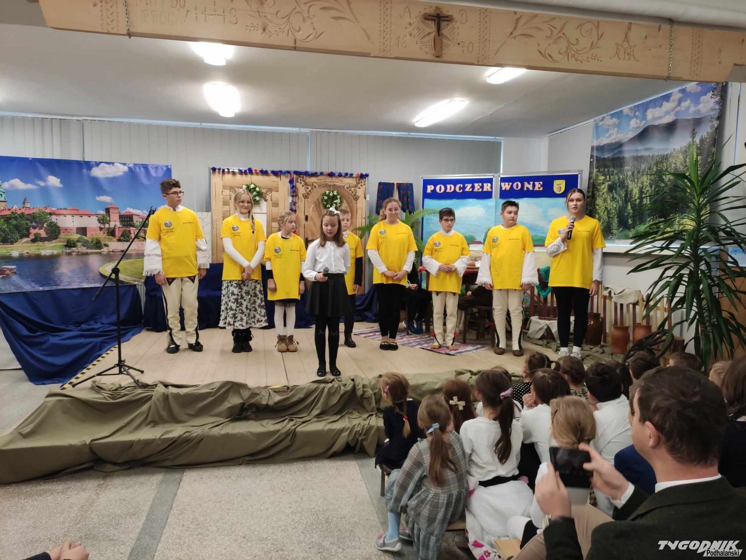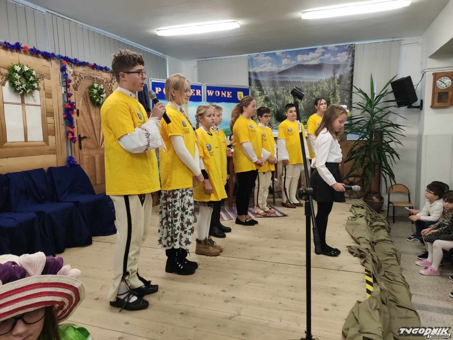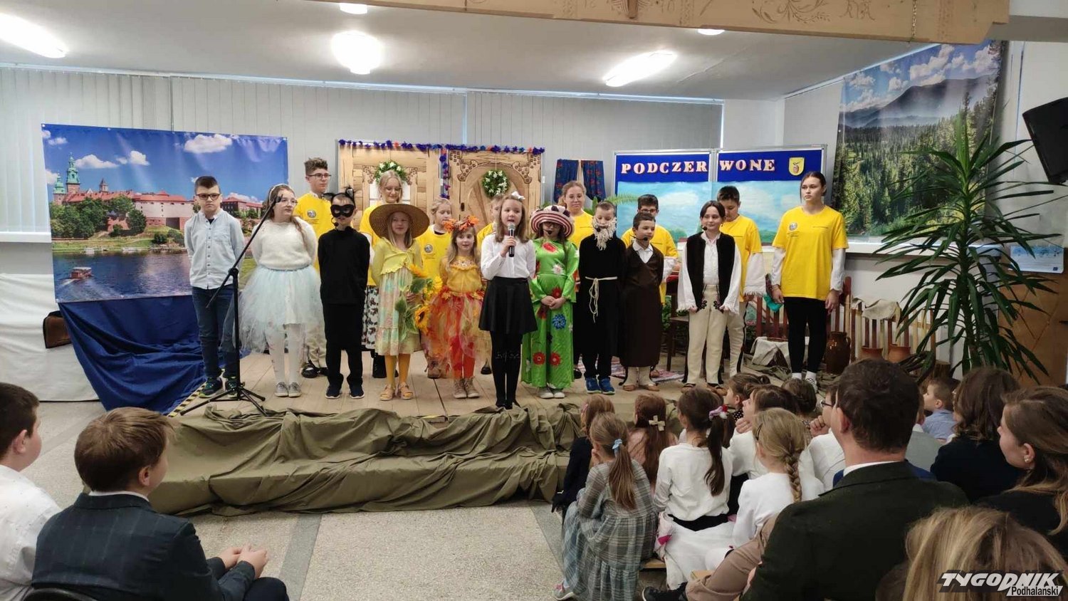 Następnie wszyscy udali się do szkoły, gdzie odbyła się dalsza część uroczystości. Wzięli w niej udział uczniowie, nauczyciele oraz rodzice, babcie i dziadkowie. Wielu z nich ukończyło też przed laty tę szkołę.