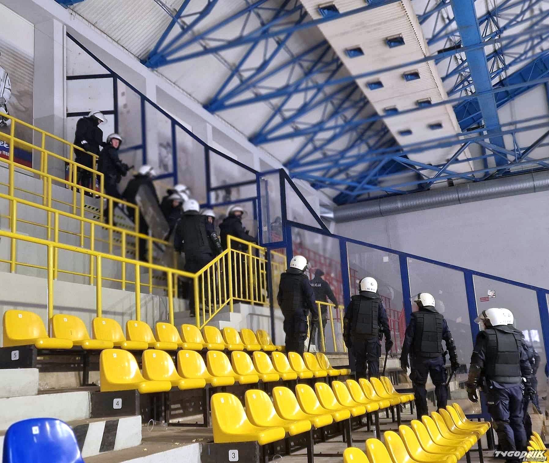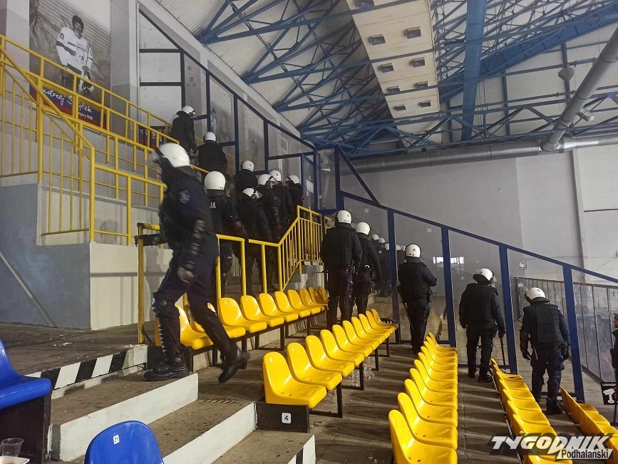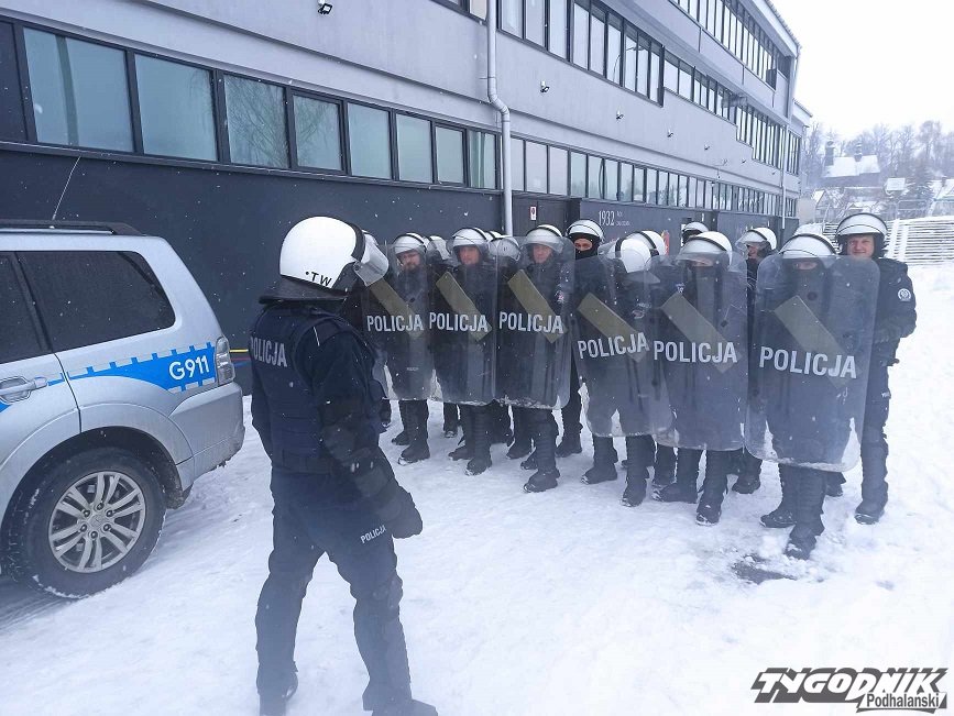 Podczas meczu hokejowego w Miejskiej Hali Lodowej w Nowym Targu doszło do starcia kibiców rywalizujących drużyn. Niezbędna była interwencja policji. Na szczęście to tylko scenariusz policyjnych ćwiczeń.