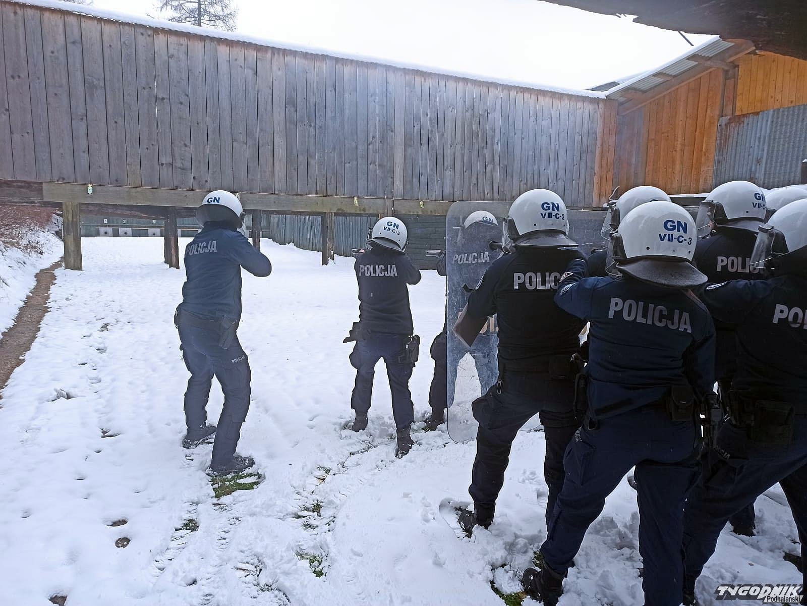 Ćwiczenia z zakresu taktyki działań podczas zbiorowego zakłócenia porządku publicznego zorganizowano 28 listopada w Miejskiej Hali Lodowej w Nowym Targu. Głównym celem ćwiczeń było doskonalenie umiejętności, wypracowanie form i metod skutecznego działania przy rozwiązywaniu sytuacji kryzysowej. Podczas prowadzonych zajęć swoje umiejętności doskonalili policjanci z Komendy Powiatowej Policji w Nowym Targu, Komendy Powiatowej Policji w Zakopanem oraz Komendy Powiatowej Policji w Myślenicach wchodzący w skład VII Kompanii Nieetatowych Pododdziałów Prewencji Policji (NPP) KWP w Krakowie.