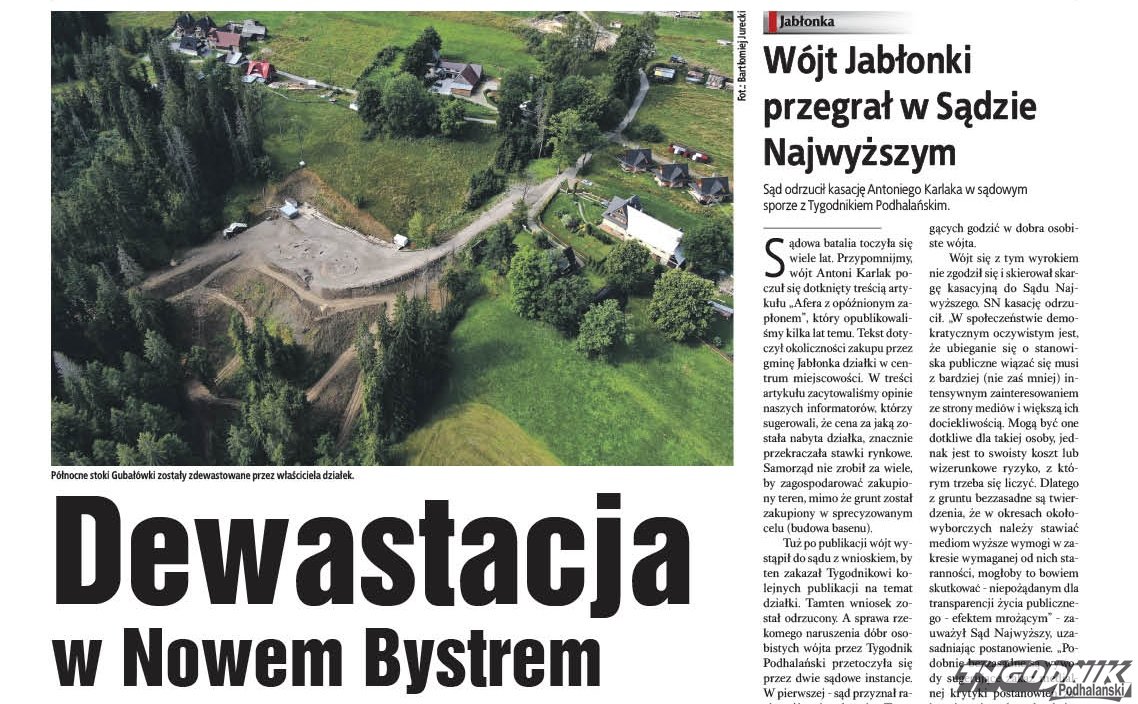 O dewastacji na działce w Nowem Bystrem pisaliśmy kilka miesięcy temu. Właściciel nawiózł na nią tony gruzu, ziemi, zmienił jej ukształtowanie. Jak twierdzą urzędnicy z Zespołu Parków Krajobrazowych Województwa Małopolskiego, doszło tam do przestępstwa, bo na działce rósł chroniony krokus. O sprawie powiadomiła ich zbulwersowana dewastacją Renata Styrczula, sołtys Nowego Bystrego Urzędnicy z Krakowa złożyli zawiadomienie na policji, która do tej pory zajmuje się sprawą.