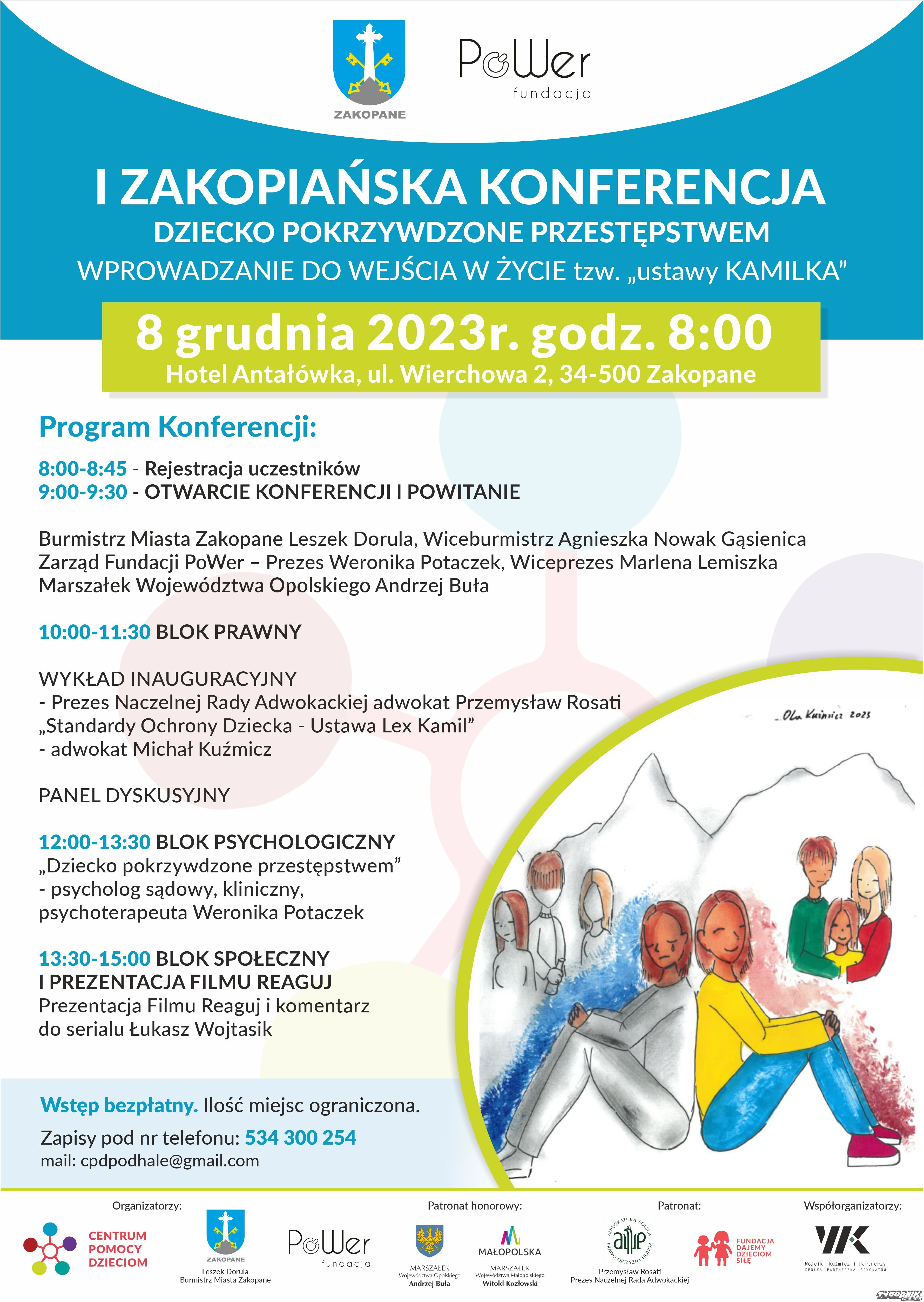 W najbliższy piątek 8 grudnia odbędzie się I Zakopiańska Konferencja Dziecko Pokrzywdzone Przestępstwem, związana z wejściem w życie tzw. ,,ustawy Kamilka'.