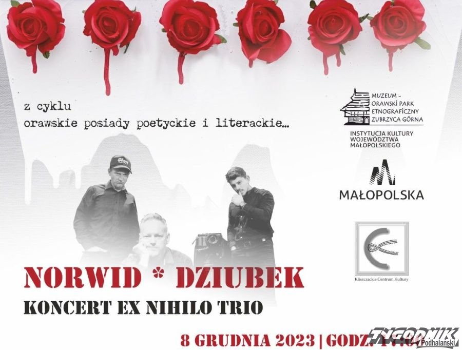 W trakcie tego wyjątkowego spotkania będziemy mieli okazję posłuchać koncertu Ex Nihilo Trio, który wystąpi w składzie: Bartłomiej Bart Dyrcz, Maikell Bednarz, Tomasz Makusek i Wojciech Pęcek. Zespół zaprezentuje autorskie aranżacje muzyczne do tekstów C. K. Norwida oraz inspirowane twórczością Stinga, balladami o zbójnikach i modlitwami maryjnymi