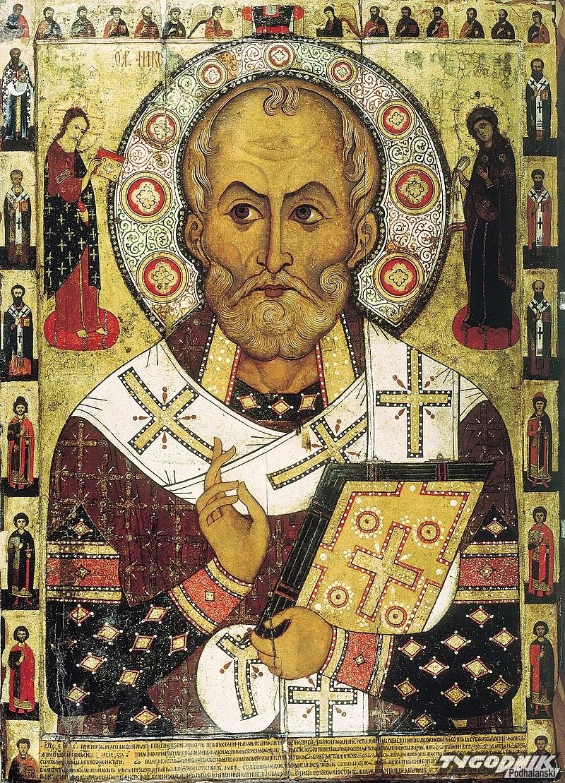 "Święty Mikołaj istnieje w ikonografii, tak prawosławnej, jak i katolickiej. Łączy Wschód z Zachodem. Wzywany jako: Mikołaj z Myry cudotwórca. O nim Jan Paweł II powiedział " Mikołaj to patron daru człowieka dla człowieka".