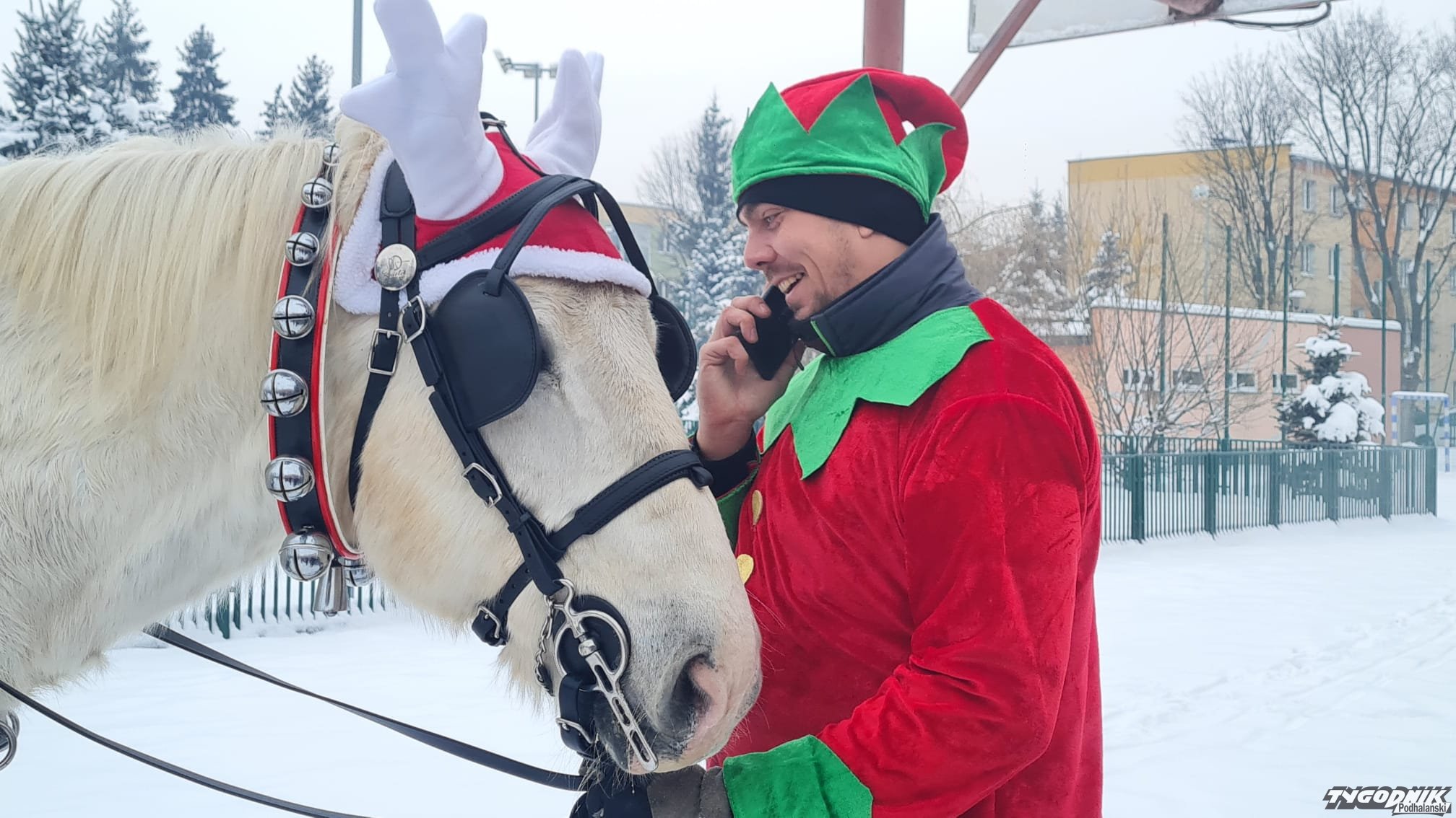 Jechał bryczką powożoną prze Elfa. Jak dowiedzieliśmy się od pomocnika świętego - to wagonetka, a ciągnął ją Agat ze stadniny w Ludźmierzu.