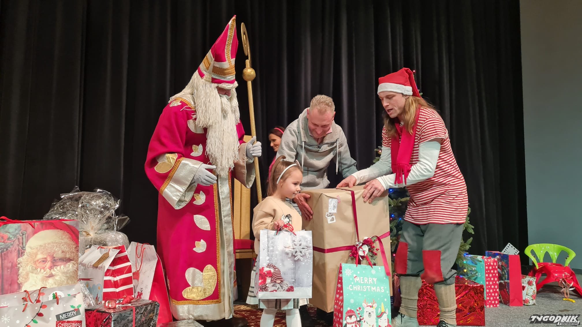 Tegoroczni pomocnicy św. Mikołaja to: Agnieszka i Wiesław Wojas - Firma Wojas S.A, Jacek Sowa, Łukasz Worwa, Szkoła Podstawowa nr 5 Nowy Targ, Liceum Ogólnokształcące nr 1 Nowy Targ, Zespół Szkół Ekonomicznych Kowaniec, Koło Gospodyń Wiejskich w Maruszynie, Szkoła Podstawowa Maruszyna Górna, Szkoła Podstawowa w Ratułowie, Zespół Szkół Zawodowych i Placówek w Krościenku nad Dunajcem, Szkoła Podstawowa Raba Wyżna, Zakład Doskonalenia Zawodowego w Krakowie z Siedzibą w Czarnym Dunajcu, Szkoła Podstawowa Łapsze Wyżne, Szkoła Podstawowa Skrzypne, Szkoła Podstawowa we Frydmanie, Szkoła Podstawowa nr 11 Nowy Targ, Zespół Szkół Jabłonka, Szkoła Podstawowa nr 6 Nowy Targ, Szkoła Podstawowa w Ludźmierzu, Szkoła Podstawowa Bańska Wyżna, Szkoła Podstawowa w Kacwinie, Szkoła Podstawowa Rokiciny Podhalańskie, Szkoła Podstawowa Sromowce Niżne, Zespół Szkół Technicznych i Placówek im.Staszica (Metalka), Szkoła Podstawowa Podczerwone, Szkoła Podstawowa Sromowce Wyżne, Szkoła Podstawowa Harkabuz, Szkoła Podstawowa Leśnica, Szkoła Podstawowa Maniowy, Joanna Repa, Anna Zgierska, Gabinet Stomatologiczny FAMILY-DENT w Ludźmierzu, Wioletta Antosiewicz-Gacek, Szymon Gacek, Aneta Markus, Sklep „U Danusi” w Maruszynie, Gabinet Stomatologiczny-URYGA, Katarzyna i Andrzej Jachymiak, Grażyna Bełtowska, LKS Drużyna Seniorska Szaflary, Albert Truty, TLHK-MMKS Podhale drużyna dziewczyn, N.T Wspólnota ”Światło Taboru”, Jasiu Stanek, Małgorzata Plewa, Maria i Andrzej Hyrczyk, Sebastian Podczerwiński, Barbara i Wiesław Barglik, Szczepan Kocańda, Zuznna Krzystyniak, Danuta Zapotoczna, Bożena Gołębiowska, Firma Handlowa Maremi, Małgorzata Maciaś.