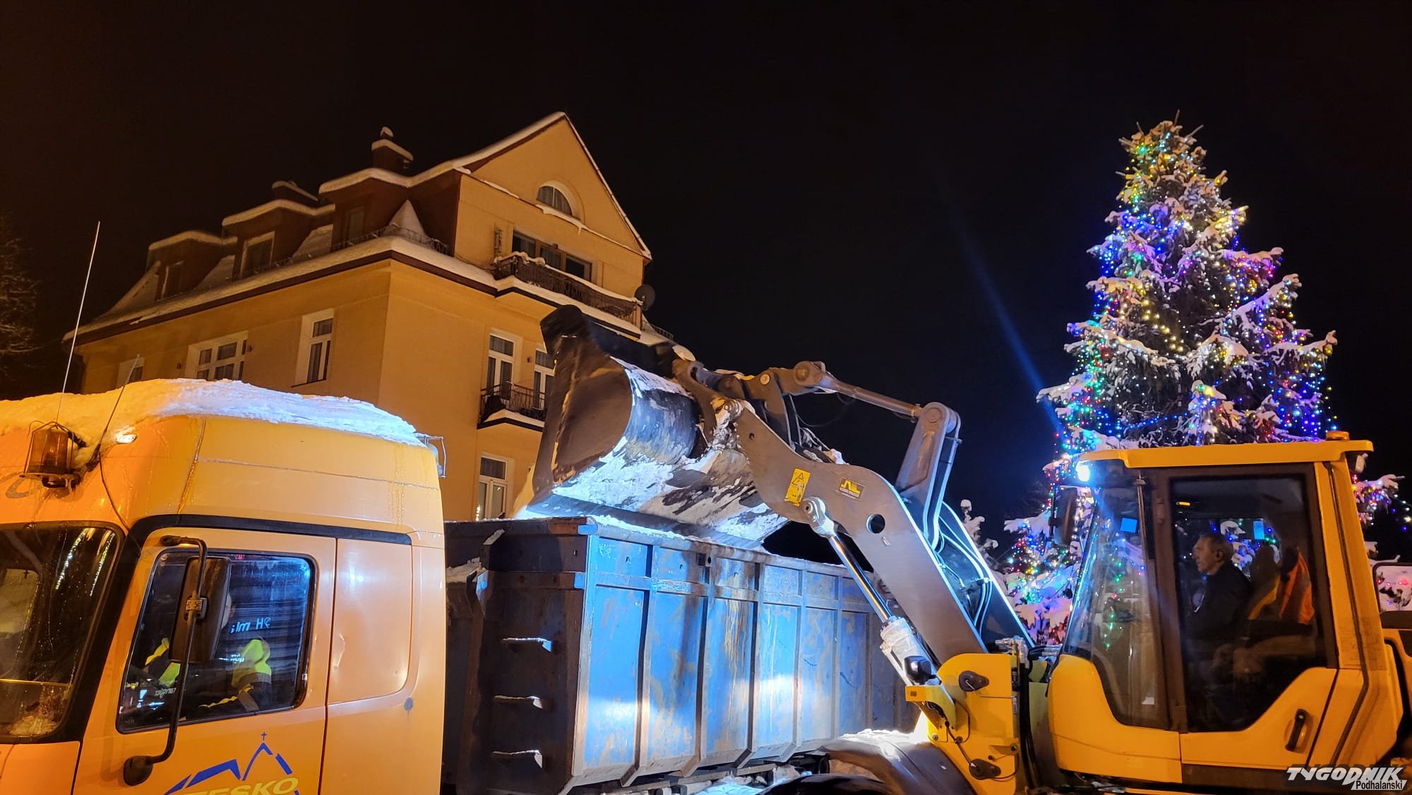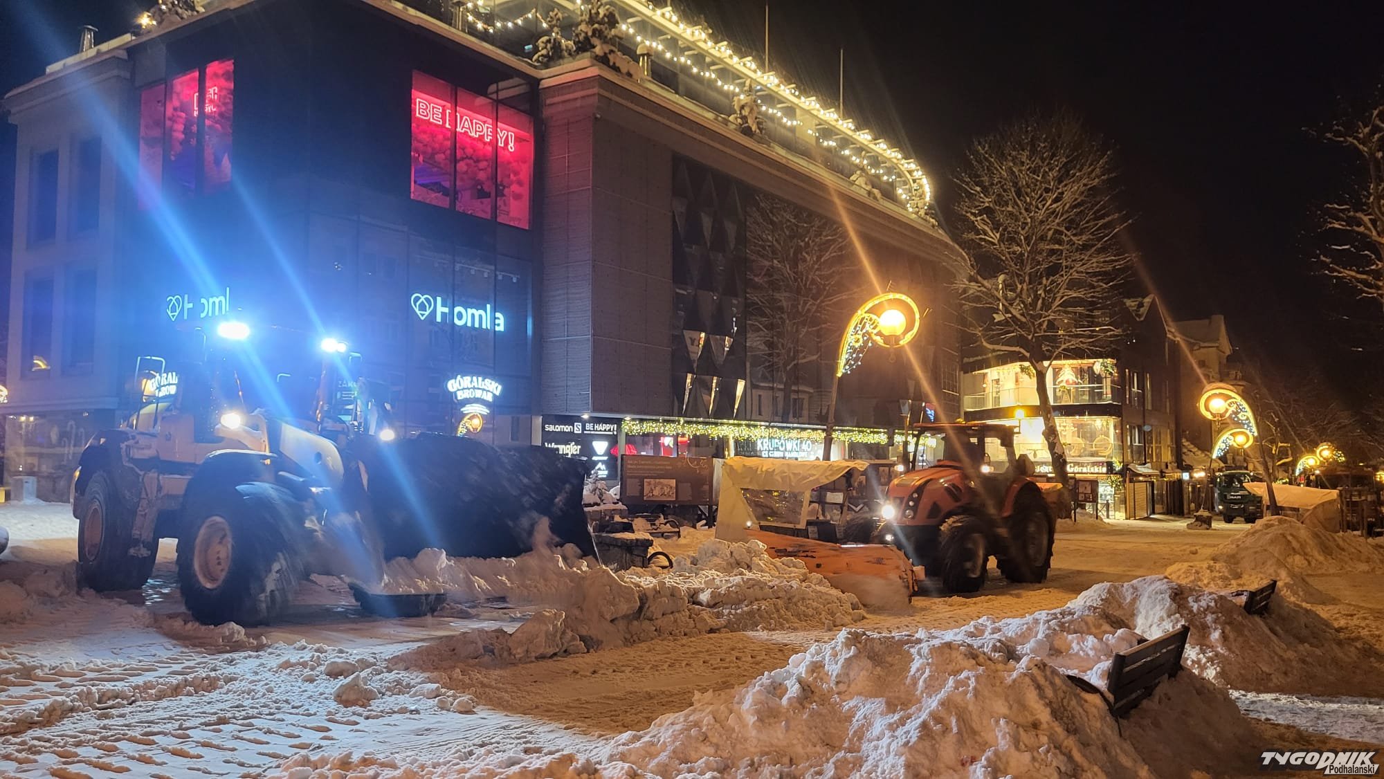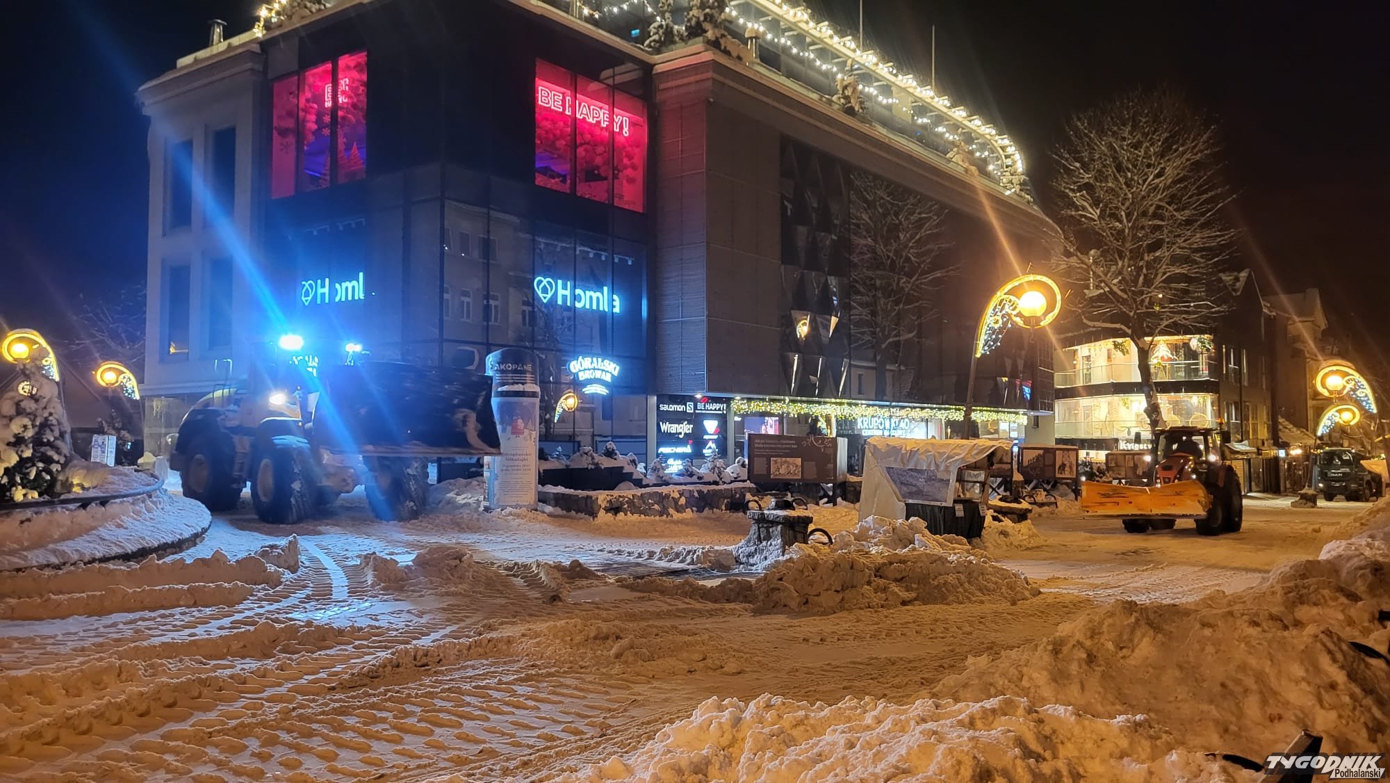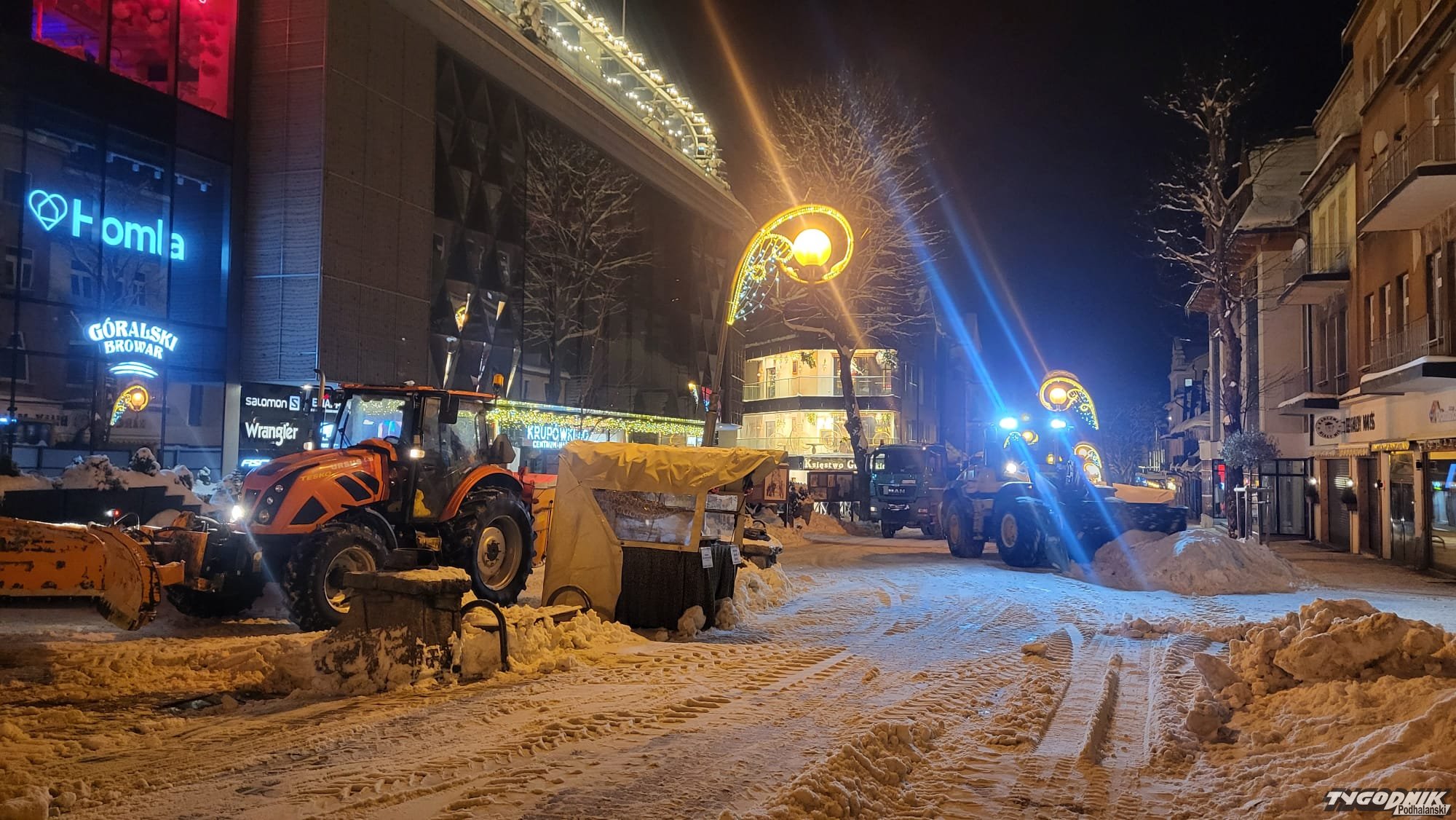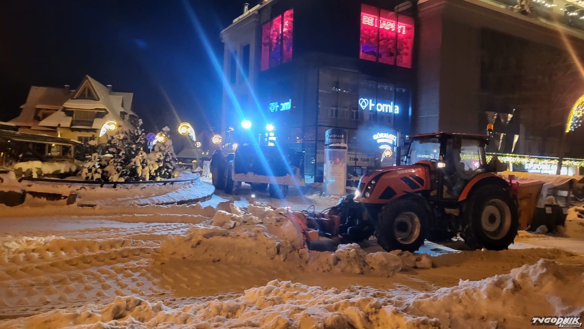 W czasie minionej nocy miejskie służby wywoziły śnieg z Krupówek.