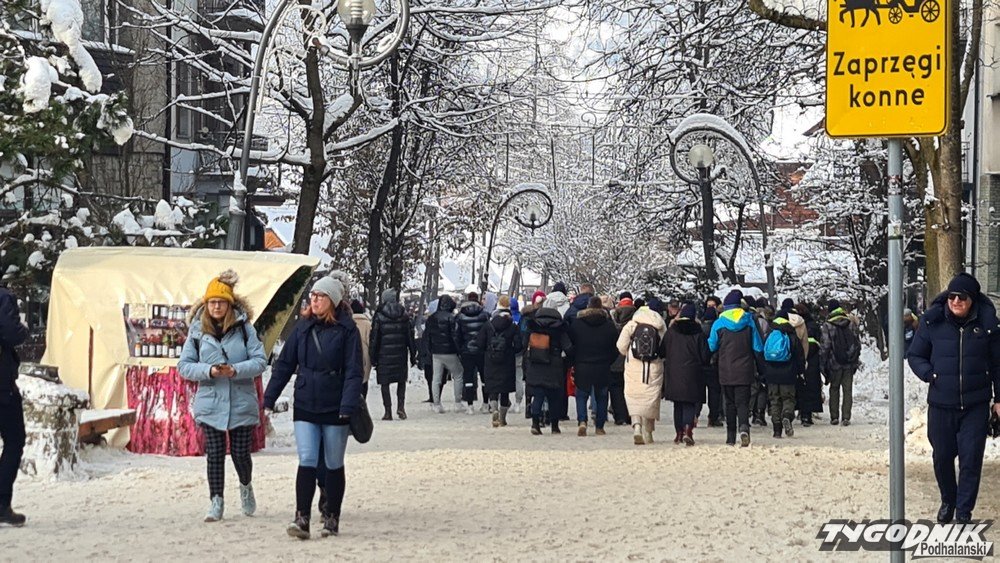 Zimowe krajobrazy przyciągnęły w weekend do Zakopanego wielu turystów.