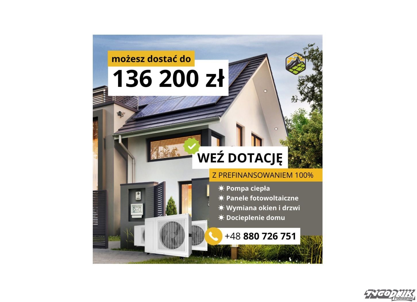 Jako firma Eco Podhale prefinansujemy 100% Twojej dotacji, dzięki czemu oferujemy szybką realizację!