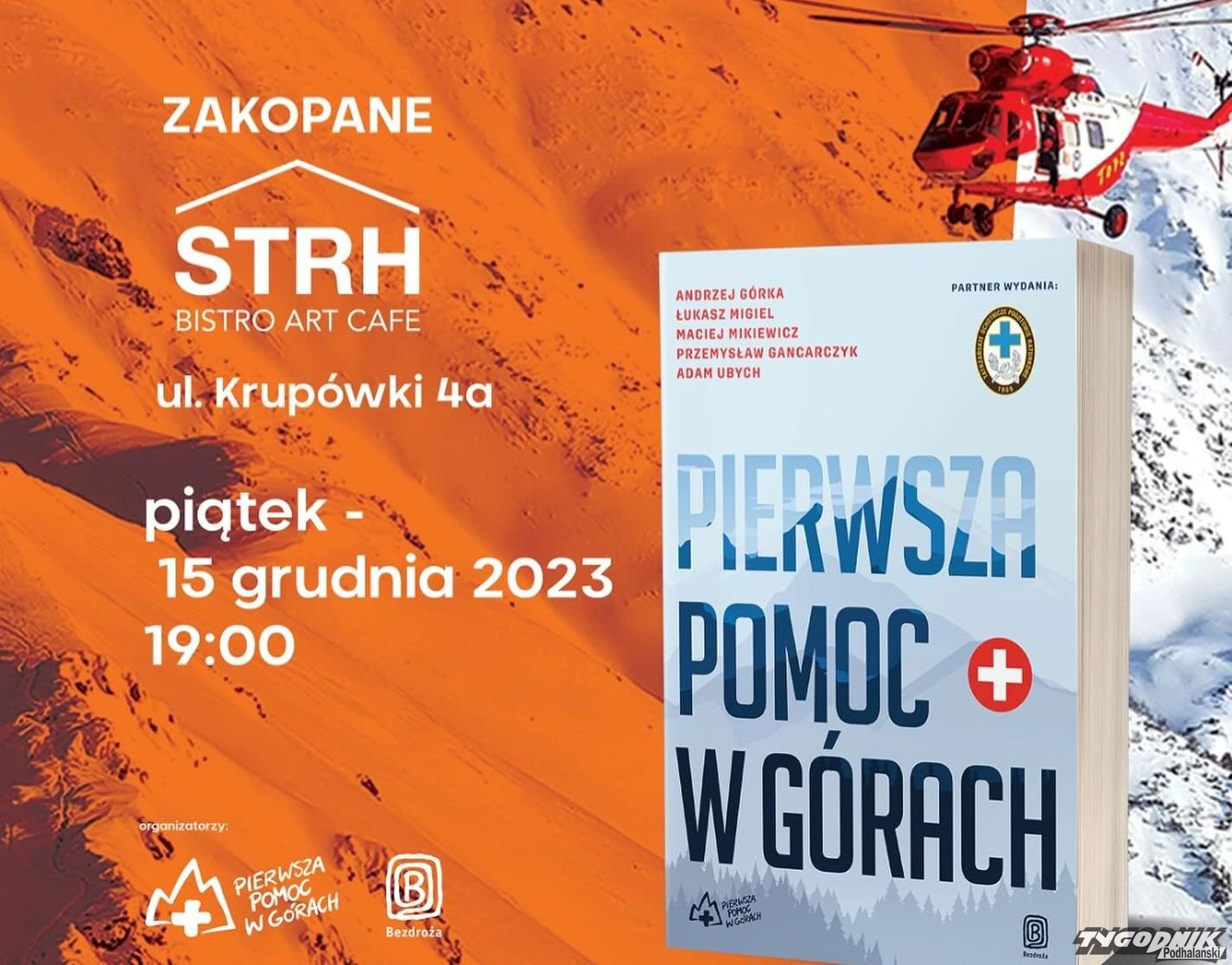 Z autorami książki "Pierwsza pomoc w górach" spotkamy się w piątek 15.12 w STRH Bistro Art Cafe w Zakopanem (ul. Krupówki 4a).