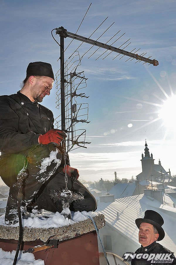 Ale wkroczyła już także nowoczesność. Dzięki specjalnej kamerze każdy komin można prześwietlić. – Kamerę się wpuszcza do środka i wszystko widać, tak jak przy gastroskopii. Widać, czy jest dziura, czy komin jest zatkany, czy jest tam mokra sadza – wymienia pan Jacek. Kolejnym niezbędny dziś sprzęt stanowi aenometr, czyli wskaźnik poboru powietrza, dzięki któremu można pomierzyć siłę ciągu, temperaturę powietrza w kominie. Są też specjalne worki do wybierania sadzy, odkurzacze i proszki, np. ograniczniki tlenu.