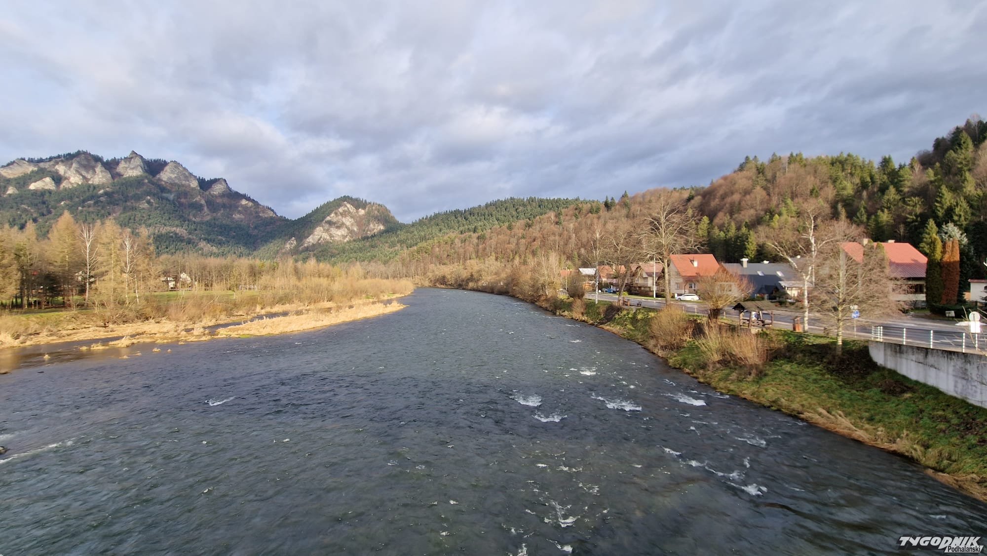 Widok z kładki na Dunajcu na Trzy Korony zjawiskowy. W Niedzicy i Sromowcach pod Trzema Koronami też piękna pogoda.