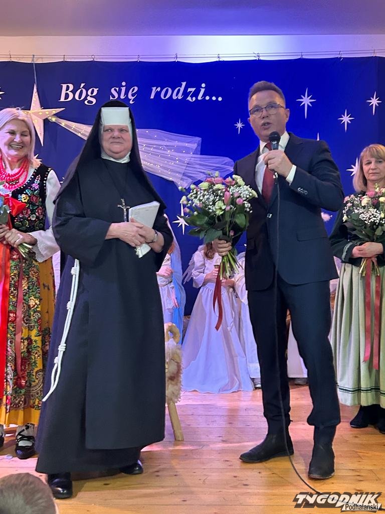 Po zakończonym spektaklu wójt gminy Tadeusz Królczyk pogratulował uczniom i opiekunom. Podziękował Zofii Brzeźnej i Annie Kozielec za przygotowanie młodzieży oraz siostrze Loretcie za śpiew scholi.
