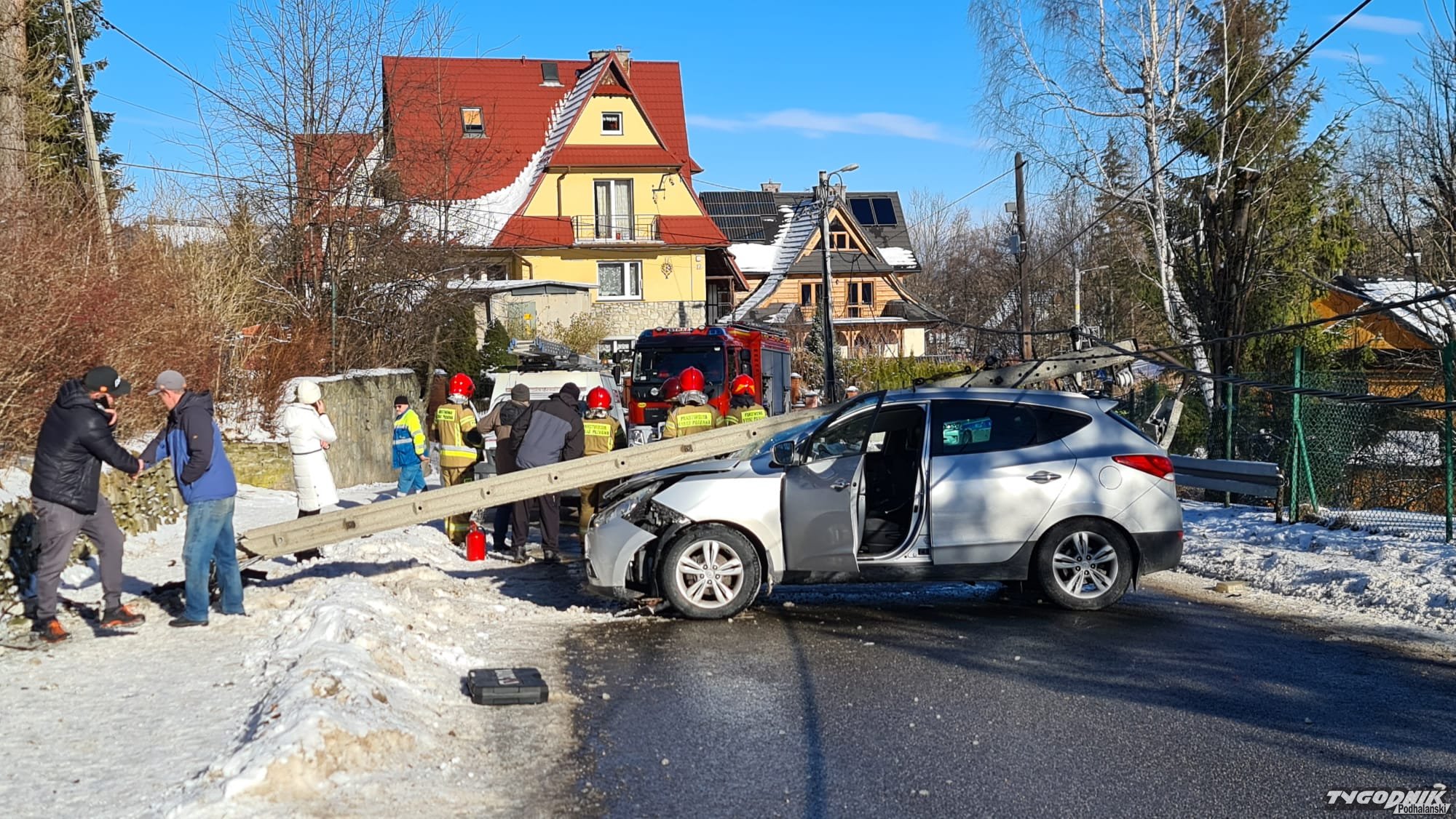 Samochód uderzył w słup w Zakopanem (ZDJĘCIA, WIDEO)