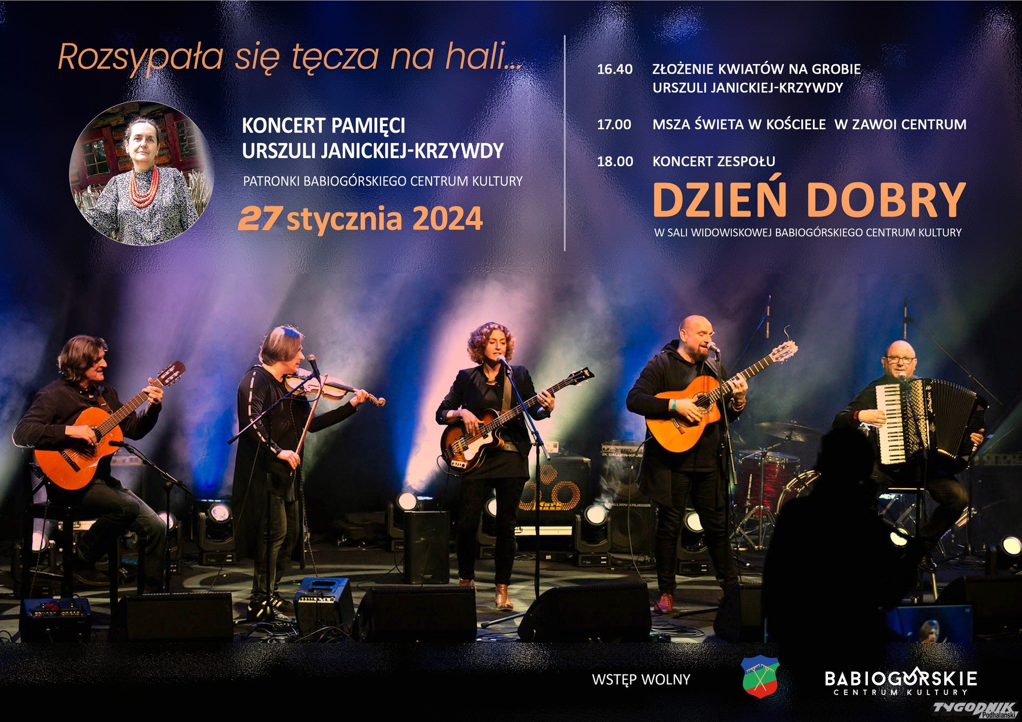 Na koncert "Rozsypała się tęcza na hali..." zapraszamy w sobotę 27.01 do Zawoi. W Babiogórskim Centrum Kultury zaśpiewa zespół Dzień Dobry.