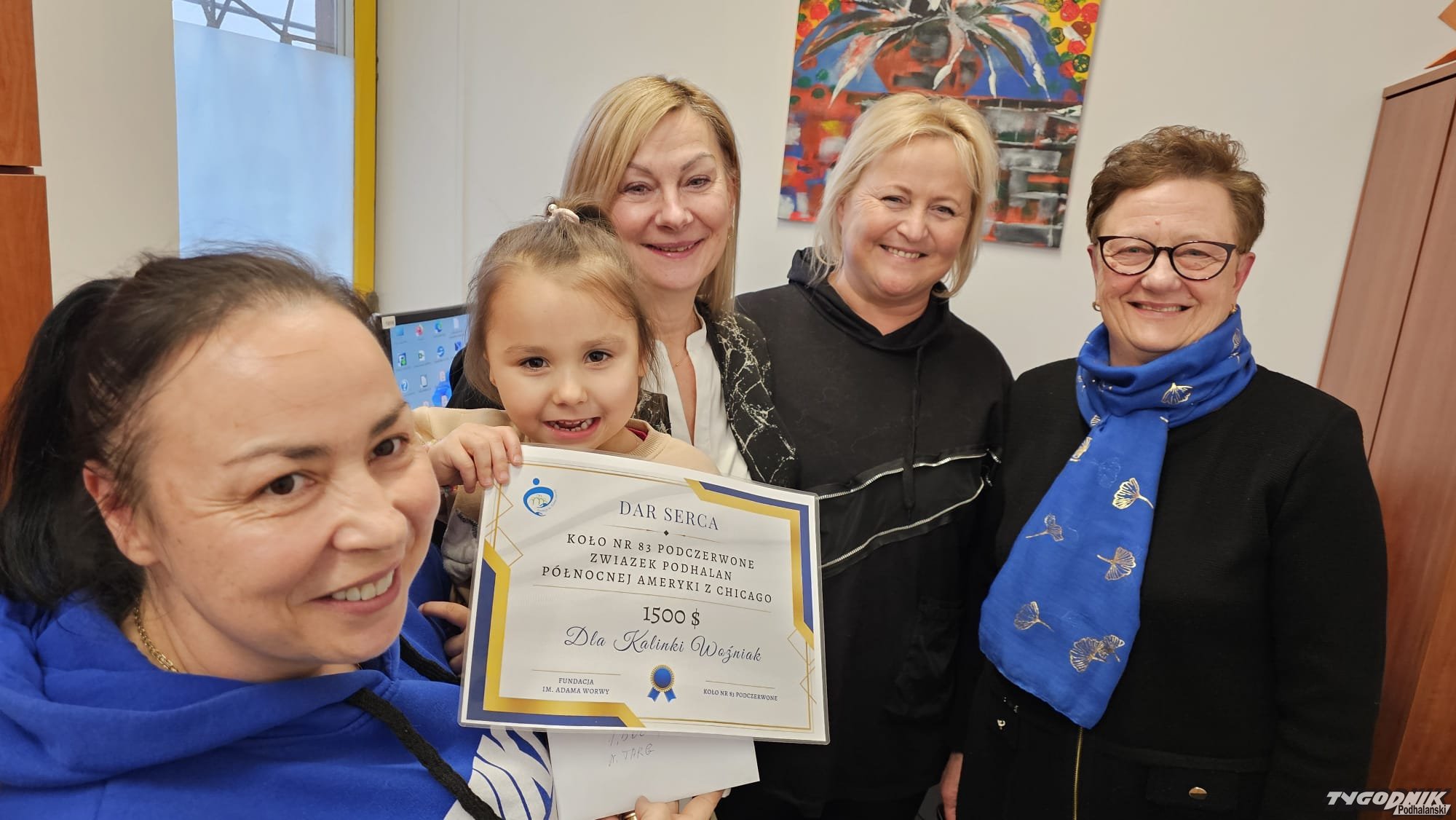 Górale z Chicago postanowili przekazać zebrane 1500 dolarów dla Kalinki Woźniak w Nowego Targu, którą czeka operacja rekonstrukcji ucha. Pieniądze przekazała Teresa Jarończyk, bratowa Bolesława Jarończyka, prezesa Koła Podczerwone.