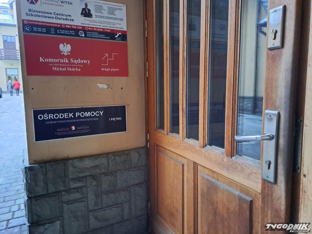 Ciekawe, bo to sąsiedztwo naszej redakcji. Fakt, przy bramie wejściowej jest tabliczka „Ośrodek Pomocy Osobom Pokrzywdzonym Przestępstwem w Nowym Targu” - jednak na drzwiach został tylko ślad po oderwanym szyldzie. Pytamy panią Edytę, sprzątającą obiekt, czy w tym biurze ktokolwiek ktoś się pojawia. - Przynajmniej od kilku miesięcy nie widziałam nikogo. Kiedyś mieli dodatkowy pokój dla psychologa, ale zrezygnowali. Zaglądali tu potem jacyś Ukraińcy, ale to z pół roku temu było - opowiada pani Edyta. Dziwne, jak na instytucję, która w ostatnich latach dostała miliony publicznych środków - powinna zapewnić prężną działalność.