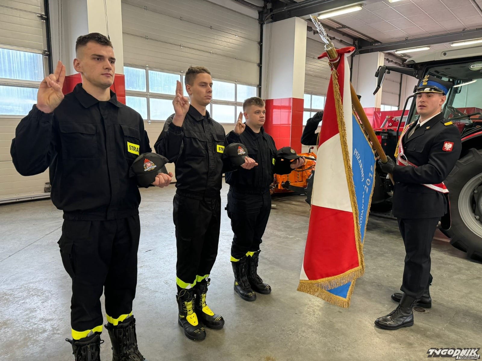 Kolejną częścią uroczystości było ślubowanie nowo przyjętych funkcjonariuszy, którzy rozpoczęli służbę w Państwowej Straży Pożarnej 1 stycznia. Są to: str. Kamil Rapacz, str. Damian Barnowski i str. Klemens Gąsienica-Byrcyn. Ślubowanie przyjął komendant Worwa.