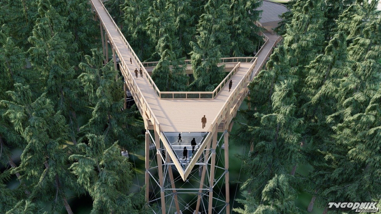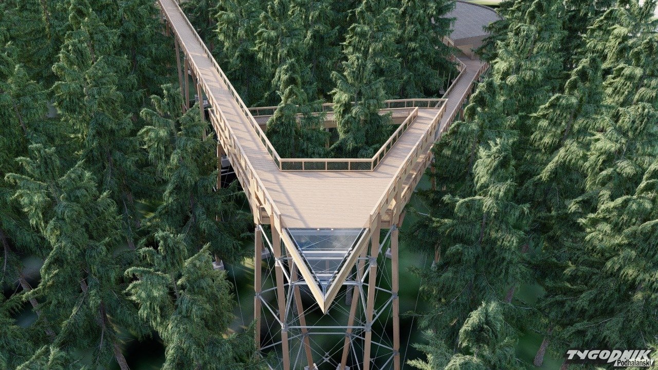 Szykuje się nowa atrakcja na Podhalu. Wśród drzew na Polanie Zgorzelisko wybudowane zostaną platformy widokowe, szklane tarasy, pajęcze sieci i trasy o zróżnicowanej długości i trudności. Jedna z platform z widokiem na Tatry umiejscowiona zostanie na wysokości 47 metrów. Realizatorem będzie czeska spółka, która ma na swym koncie wiele takich realizacji w Europie.