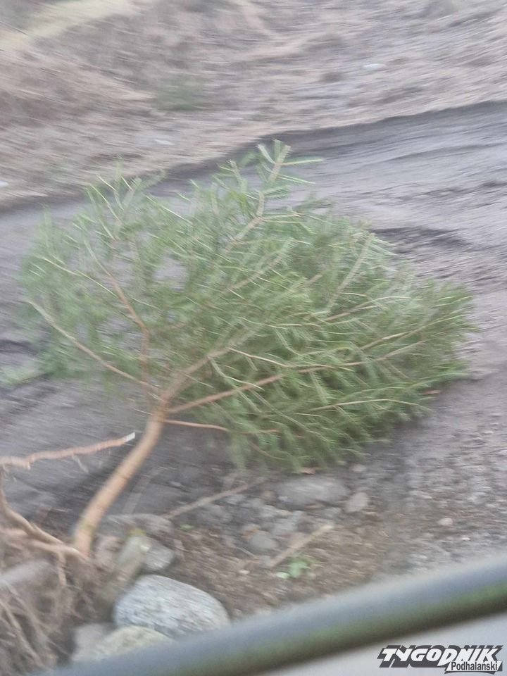 Droga w Białce Tatrzańskiej jest tak dziurawa, że ktoś zasadził na niej świerka