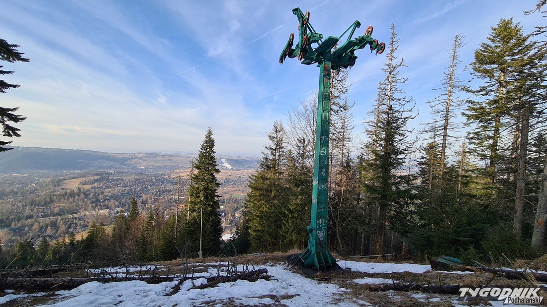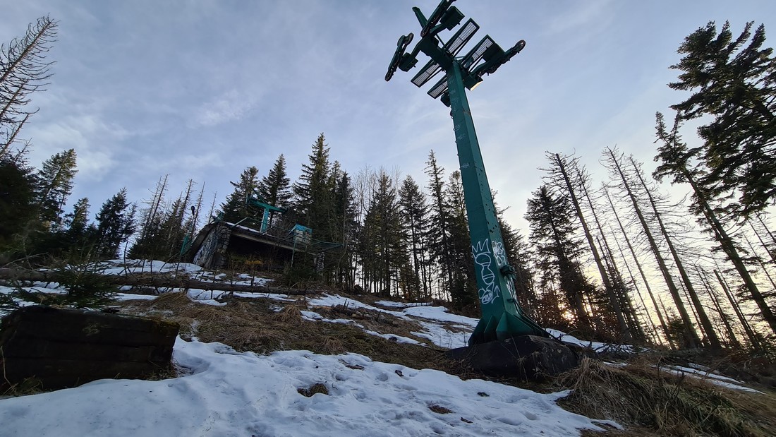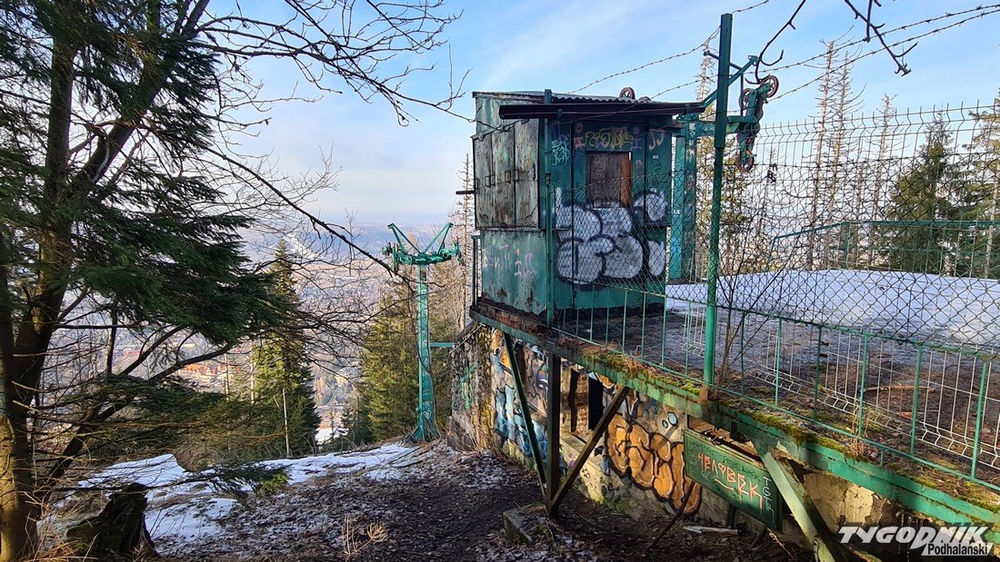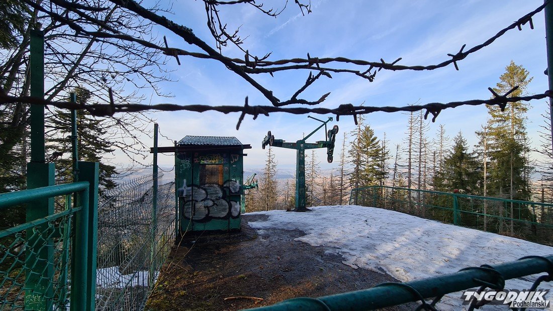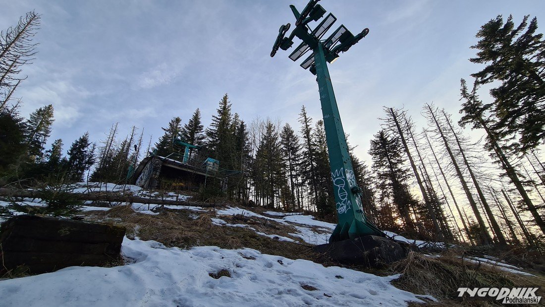 Na zdjęciach obok możecie zobaczyć, jak wygląda zrujnowana górna stacja wyciągu krzesełkowego na Nosalu.
