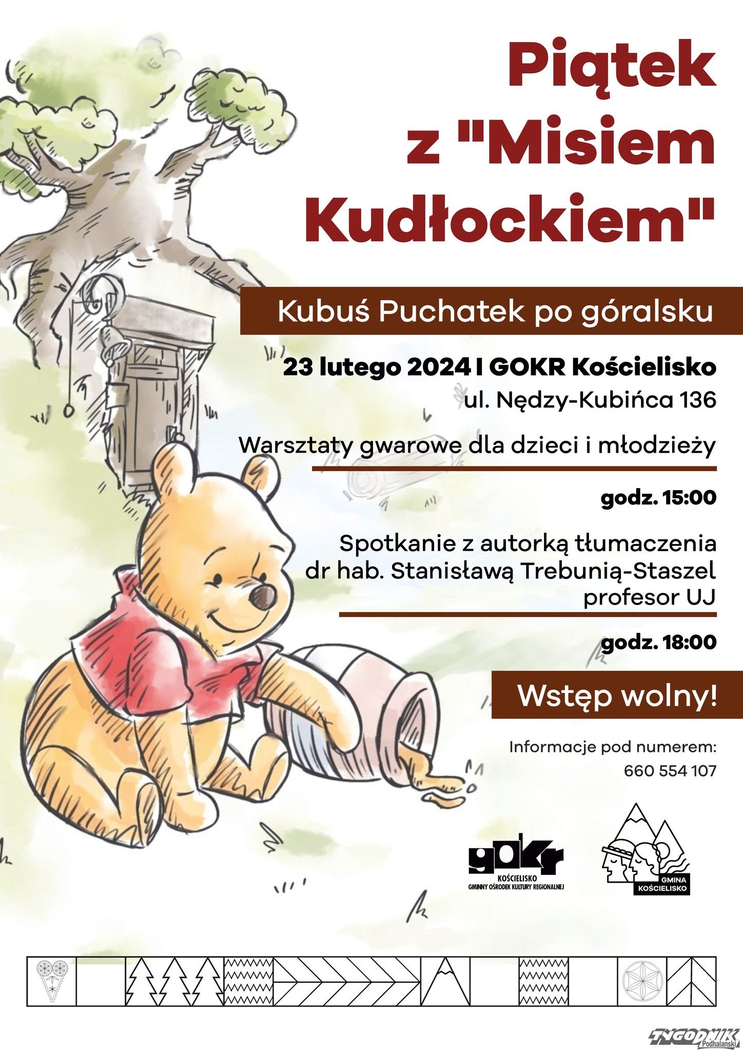 Najbliższy piątek 23.02 w Gminnym Ośrodku Kultury Regionalnej Kościelisko poświęcony będzie Kubusiowi Puchatkowi.