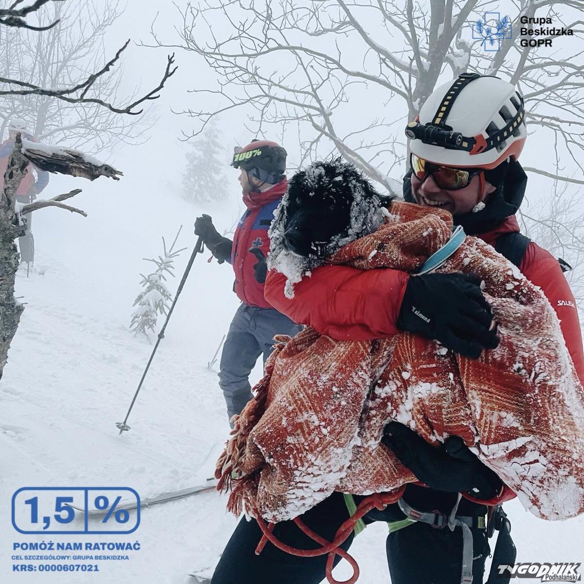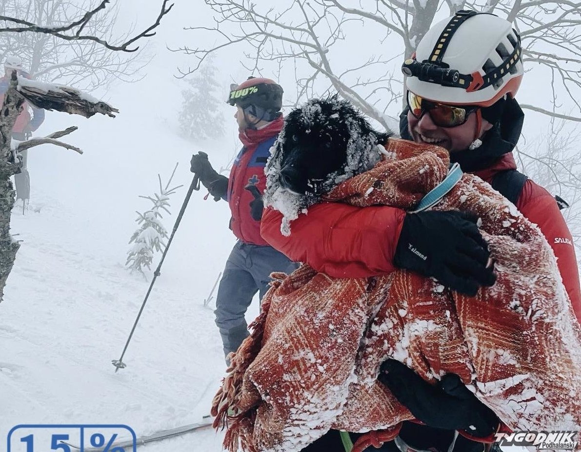 Ratownicy z Grupy Beskidzkiej GOPR usłyszeli szczekanie psa na Babiej Górze. Poszli go szukać.