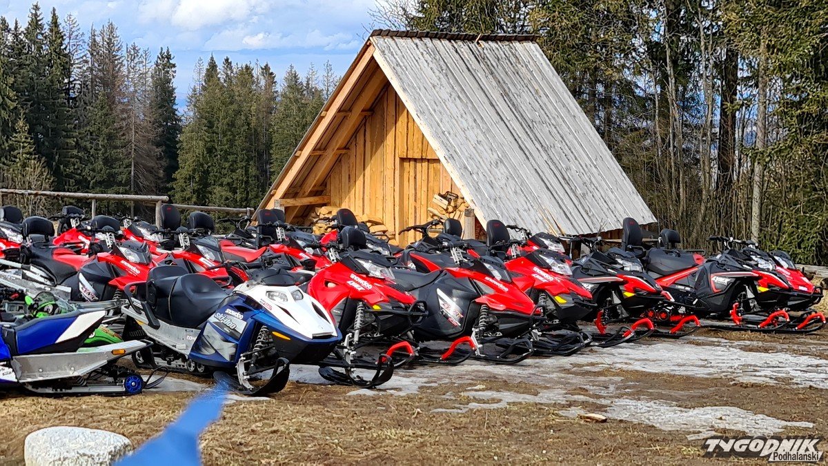 Stojące bezczynnie w rejonie Butorowego Wierchu skutery śnieżne pokazują jak ciężkie czasy przyszły dla niektórych przedsiębiorców.