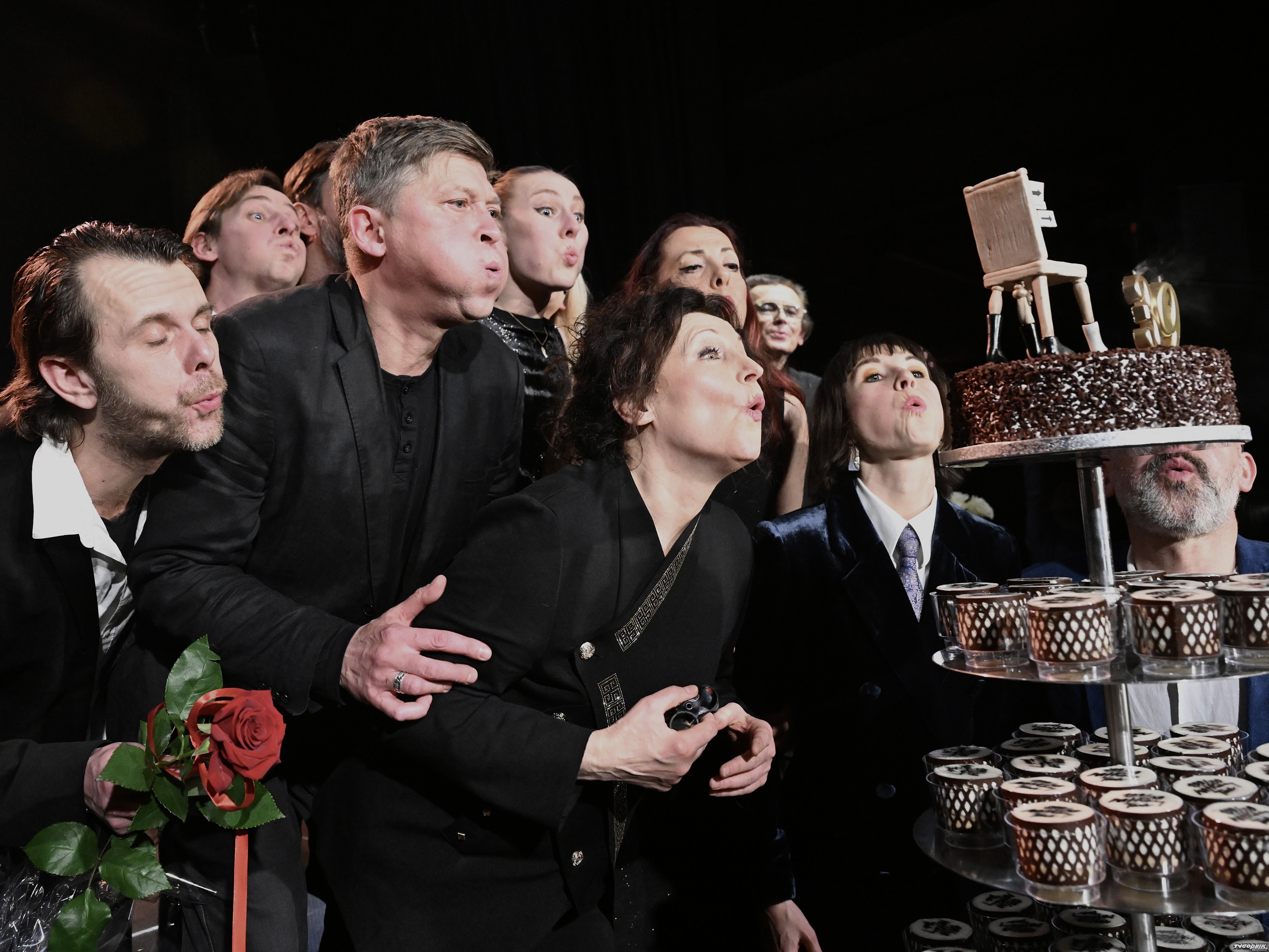 Po krótkiej przerwie goście przenieśli się do nowej Sceny Atelier, niedawno otwartej, dedykowanej młodemu pokoleniu.I tu - tradycyjnie - był koncert w wykonaniu zespołu Teatru Witkacego. Potem przemówienia, dziękczynienia, gratulacje i prezenty.
