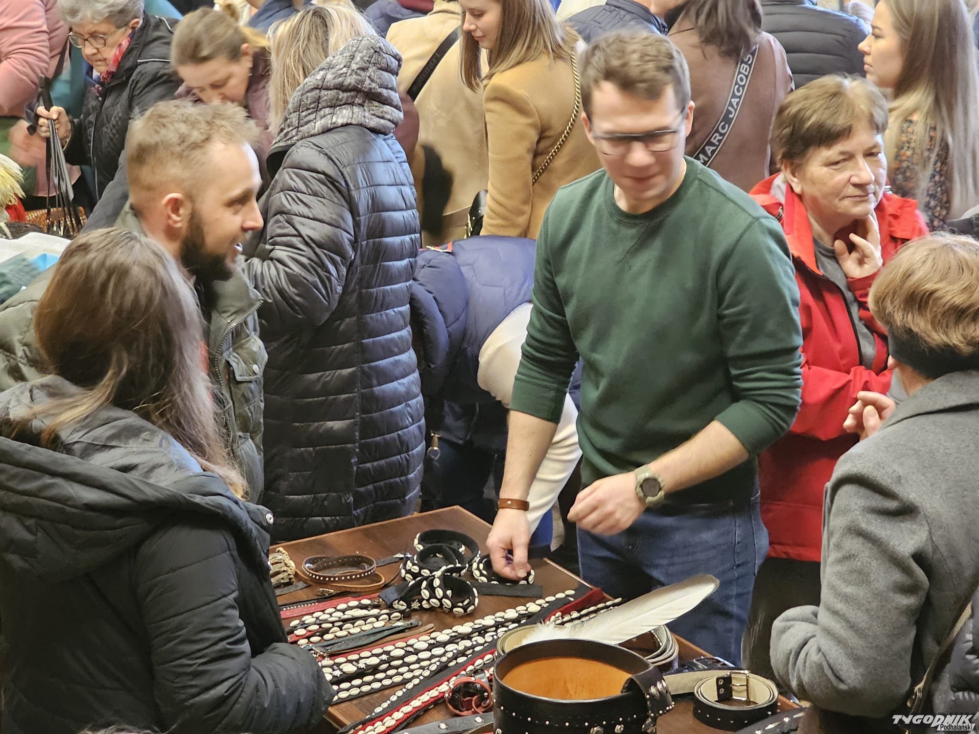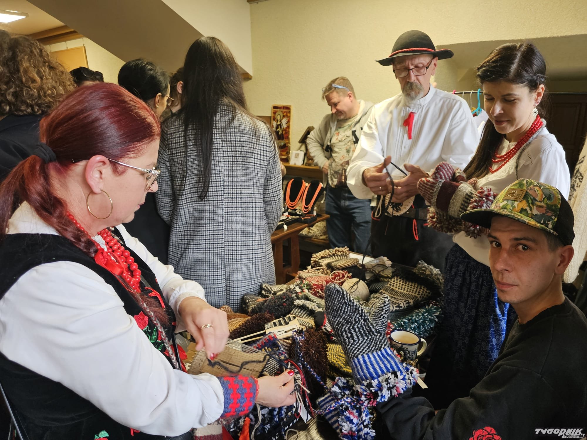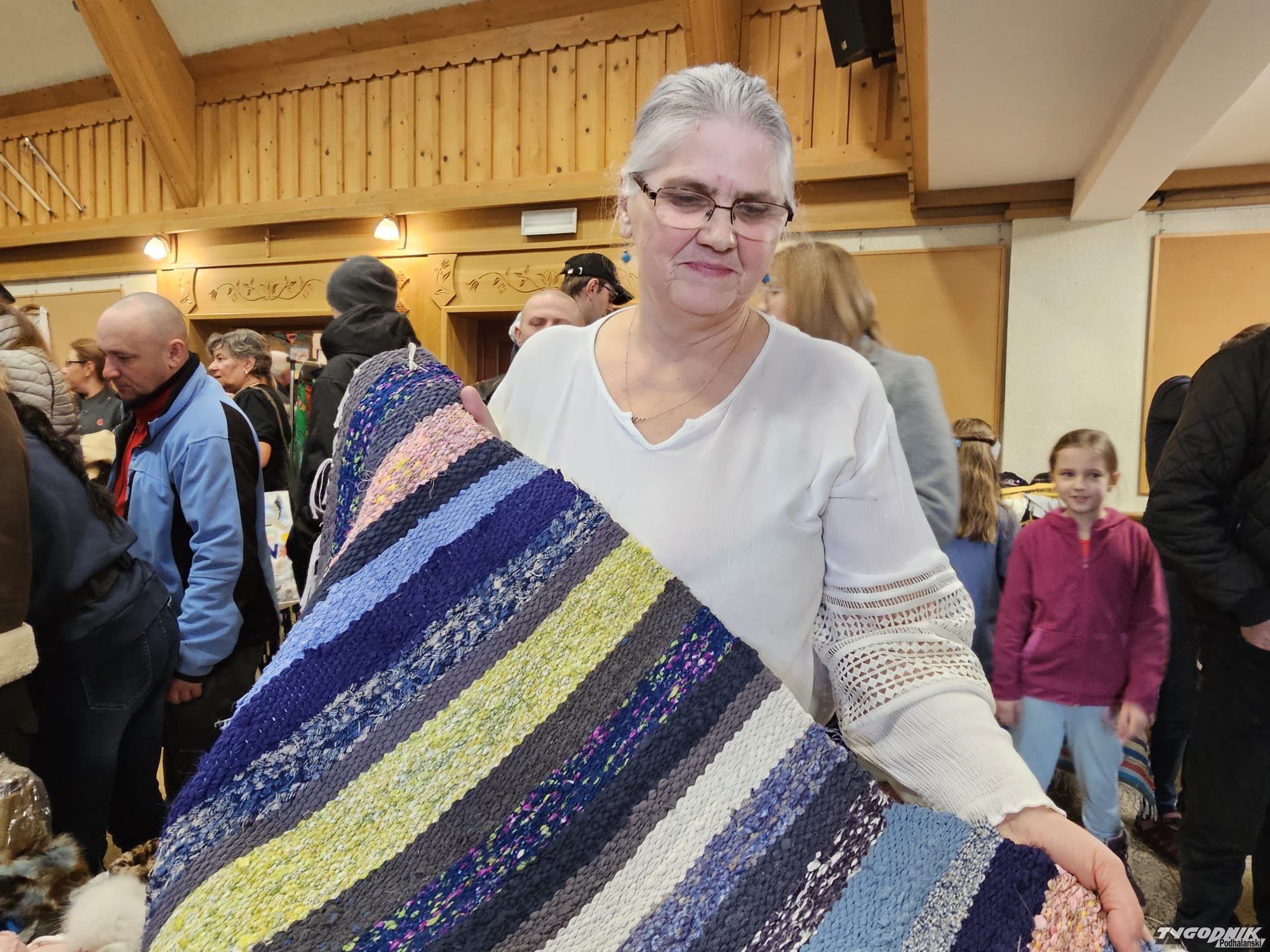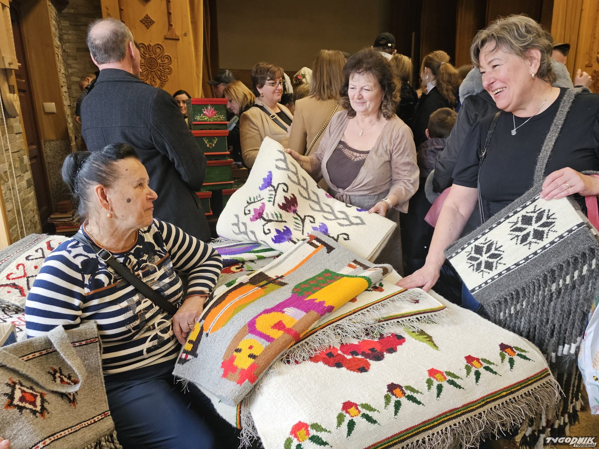 Bożena Doleżuchowicz Mickiewicz z Kościeliska wyciągnęła ze starych skrzyń katanki, które szyła jej babka - Klementyna Fąfrowicz. Była słynną w okolicy krawcową. - Te katanki mają ok 60 lat, proszę zobaczyć jak są uszyte - pokazuje właścicielka pięknych strojów. - Niestety już się w nich nie mieszczę - dodaje. Maria Naglak z Zębu przywiozła do Łopusznej przepiękne, misternie utkane kilimy i chodniki. Jej prace są rozpoznawalne, wyróżniają się starannością wykonania.Marcin Bigos z Pyzówki pojawił się także z wyrobami, które sam wykonuje. A są to skórzane pasy tradycyjne, juhaskie, muzykanckie zwane też żmijkami albo owijaczami. Można u niego nabyć kostki do kapeluszów czy różdżki. - Są coraz modniejsze, nosi je coraz więcej chłopaków na Podhalu - pokazuje różdżki do kapelusza z poroża jelenia czy kozła. Do takiej różdżki wkłada się pióro i umieszcza na kapeluszu. Pasy wykonuje także Patryk Traczyk z Rabki. - Wykonanie takiego szerokiego pasu do męskiego stroju góralskiego zajmuje trzy, cztery dni. To bardzo pracochłonna, misterna robota - przekonuje. Nic wiec dziwnego, że za taki pas trzeba zapłacić ok. 1800- 2000 zł.Nie są także tanie rękawice furmańskie, z którymi przyjechała rodzina Nakielskich z Piwnicznej. Już cztery pokolenia w tej rodzinie wykonują rękawice, które wpisane są na Krajową Listę Niematerialnego Dziedzictwa. - To są rękawice tkane. Są bardzo zbite, twarde, ciepłe i nieprzemakalne. Tą tradycję zapoczątkował w naszej rodzinie dziadek Michał Nakielski - opowiada jego wnuczka. - Takie rękawicę tka się do tygodnia, nawet 40 godzin - dodaje. Ich koszt to 250 - 300 zł. Targowisko Regionalne w Gminnym Ośrodku Kultury w Łopusznej odbyło się po raz siódmy. Niw wszyscy handlujący zmieścili się w sali widowiskowej, stoły były nawet w holi. Także tłumy kupujących lub oglądających były nieprzebrane.
