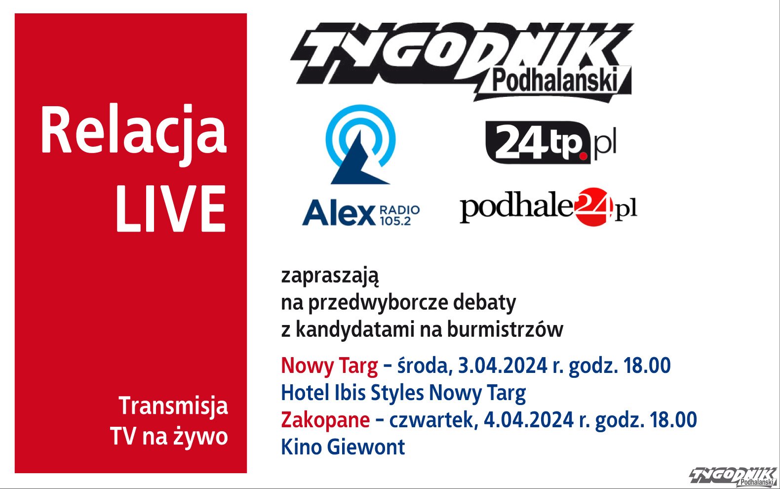 Wraz z Radiem Alex i portalem Podhale24.pl zapraszamy na debaty z kandydatami na burmistrzów Zakopanego i Nowego Targu.