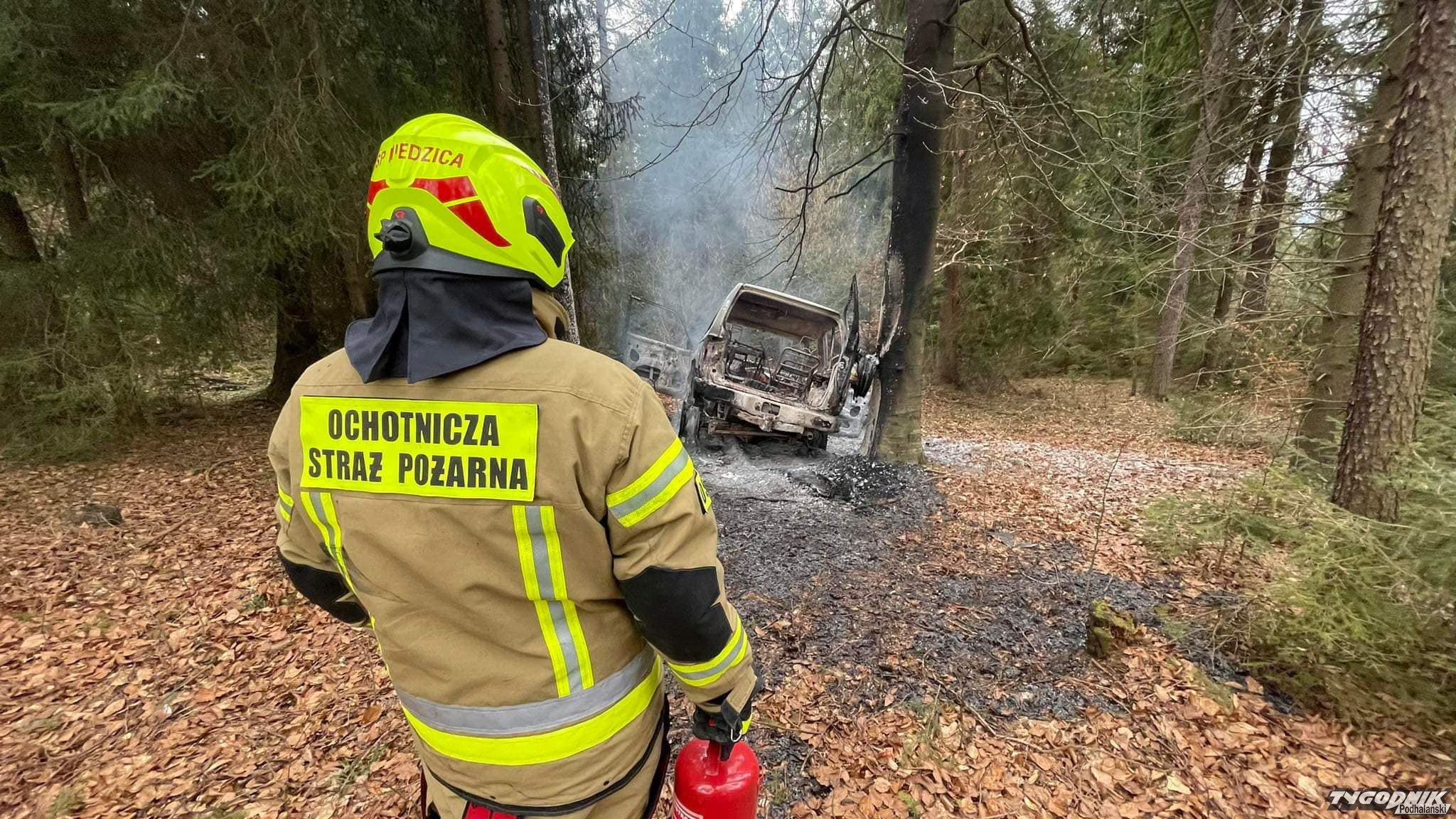 Dziś, krótko po siódmej rano strażacy zostali wezwani do pożaru w terenie leśnym w Kacwinie. Okazało się, że na wąskiej leśnej drodze płonie terenówka. Ogień strawił samochód niemal doszczętnie. Płonący wrak dogaszali druhowie z OSP Niedzica oraz strażacy z nowotarskiej Jednostki Ratowniczo-Gaśniczej.
