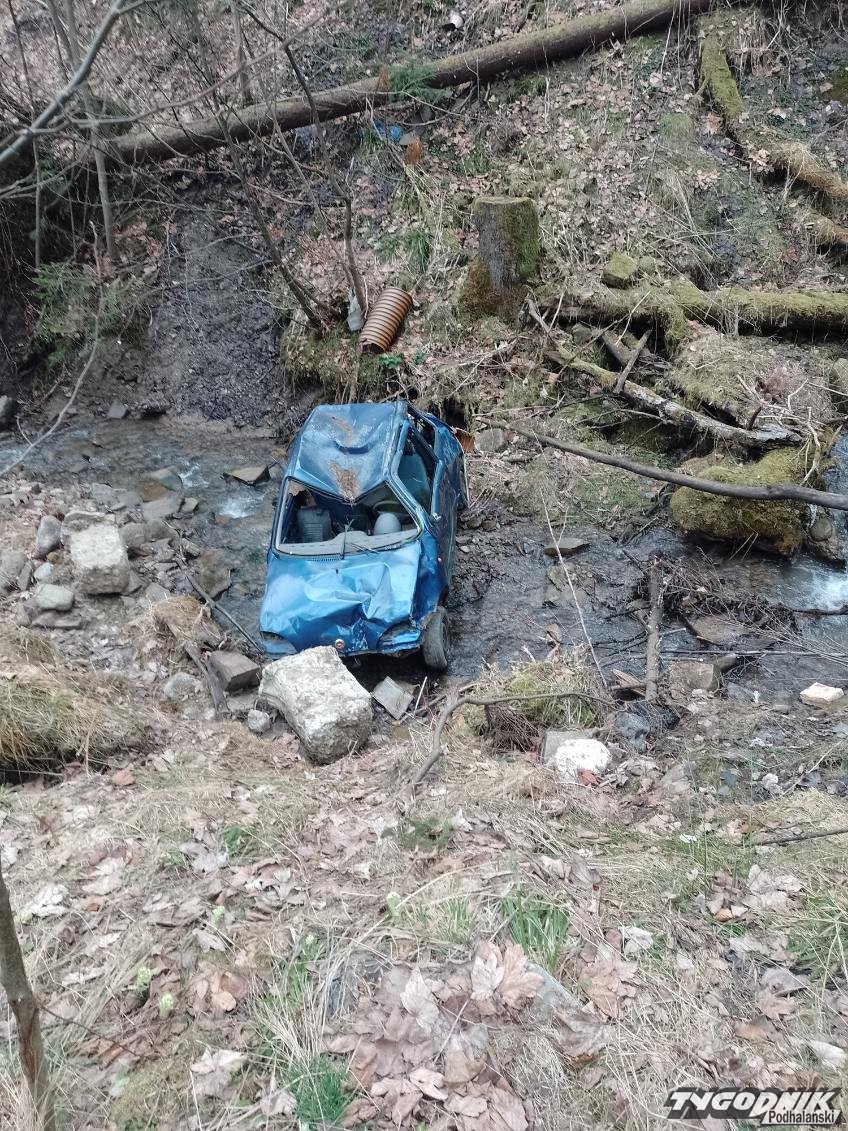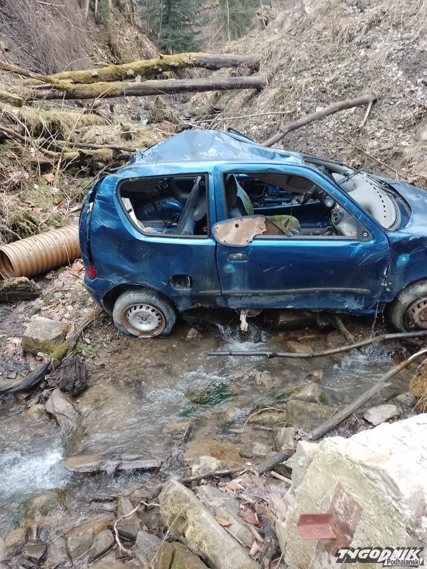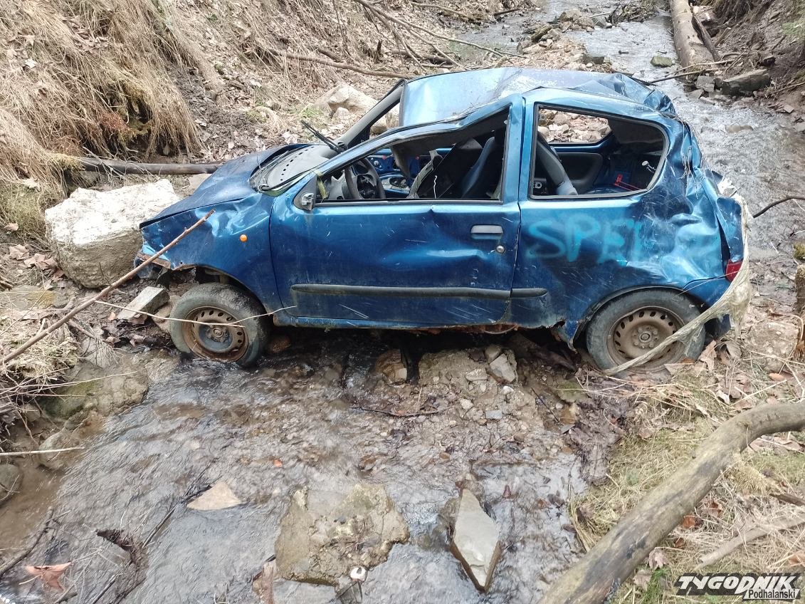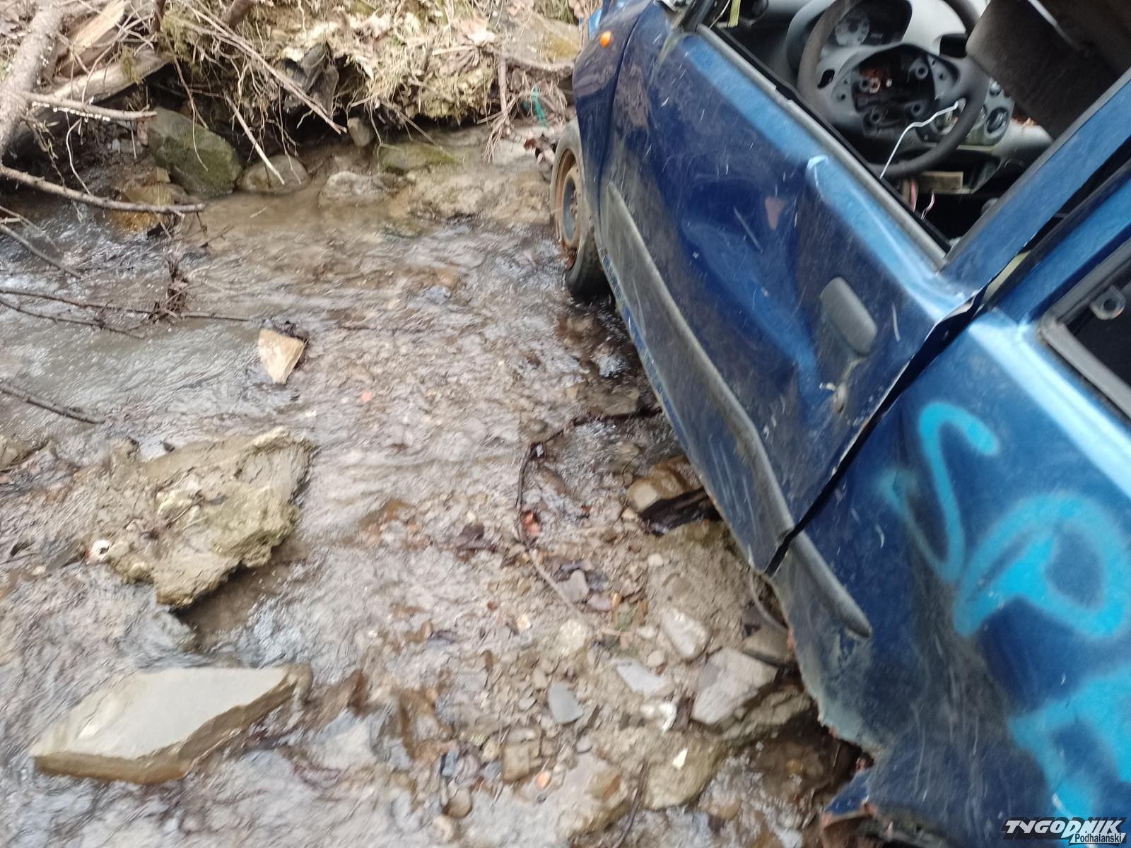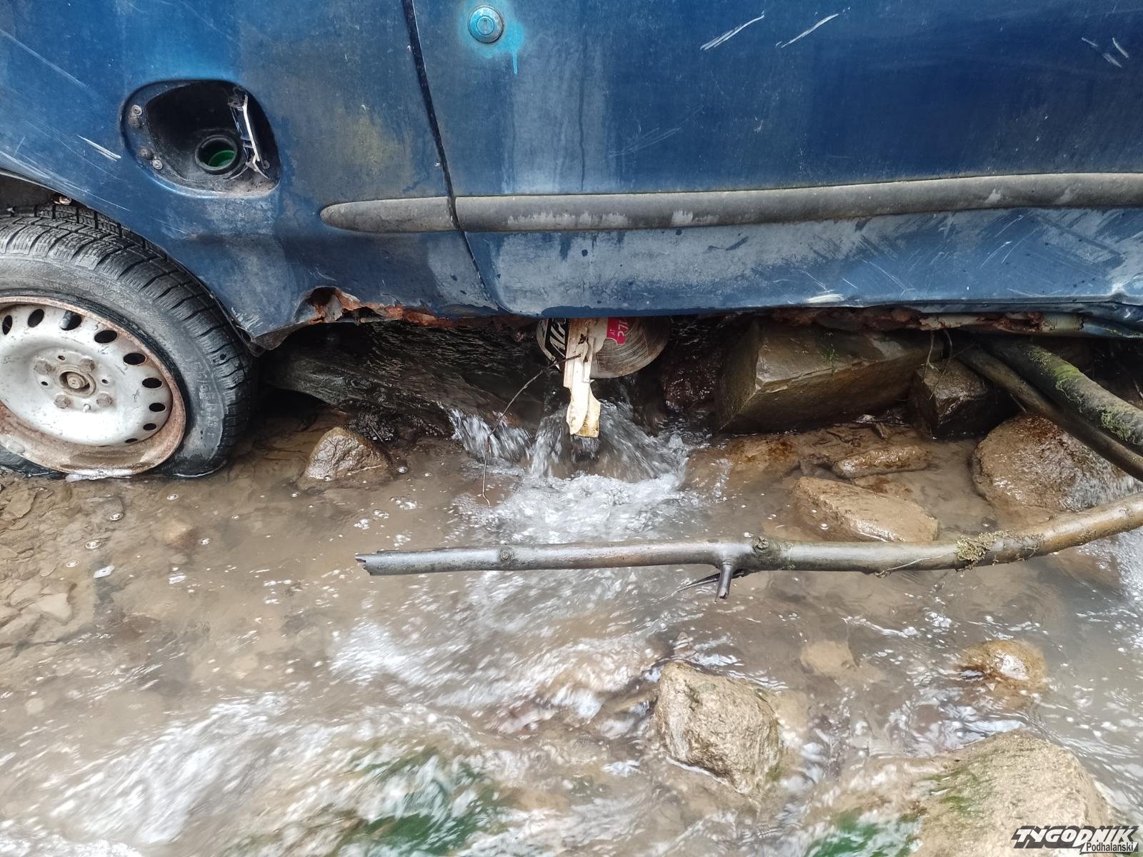Wrak w potoku na Kotelnicy w Zakopanem jak stał w potoku tak stoi.