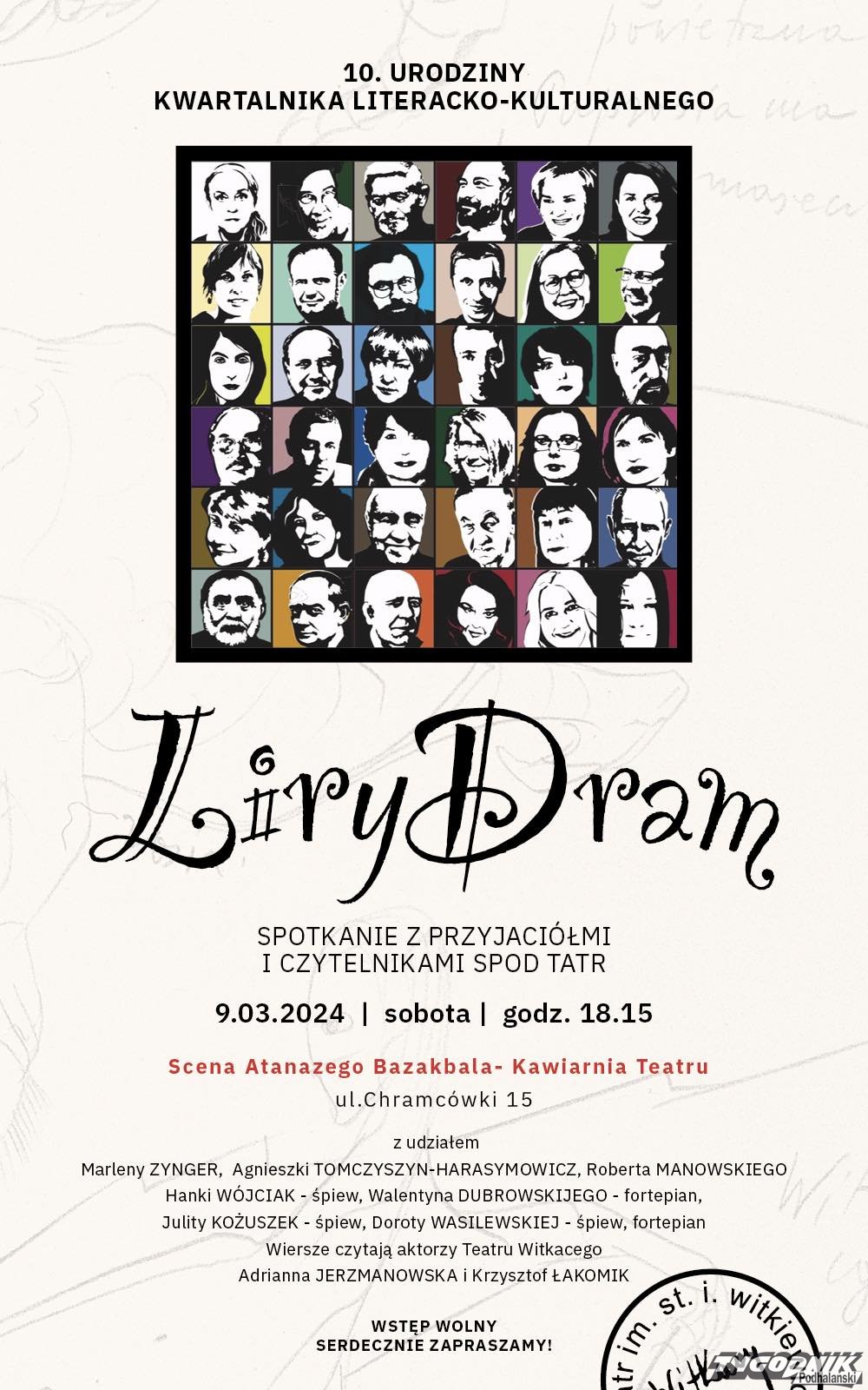 Już w najbliższą sobotę 9 marca w zakopiańskim Teatrze Witkacy swoje 10. urodziny będzie świętował Kwartalnik Literacko-Kulturalny "LiryDram".