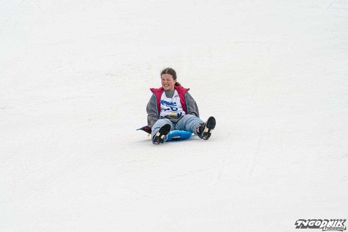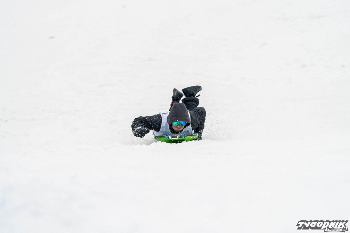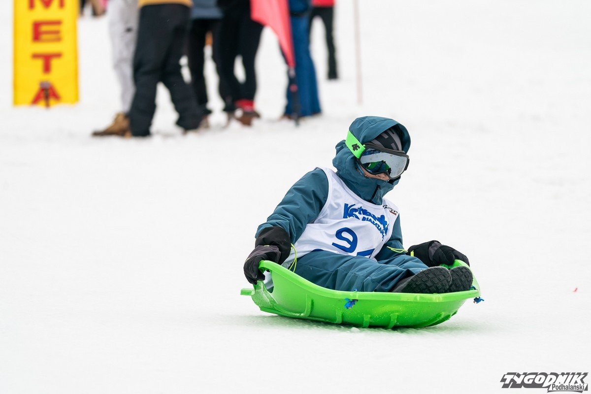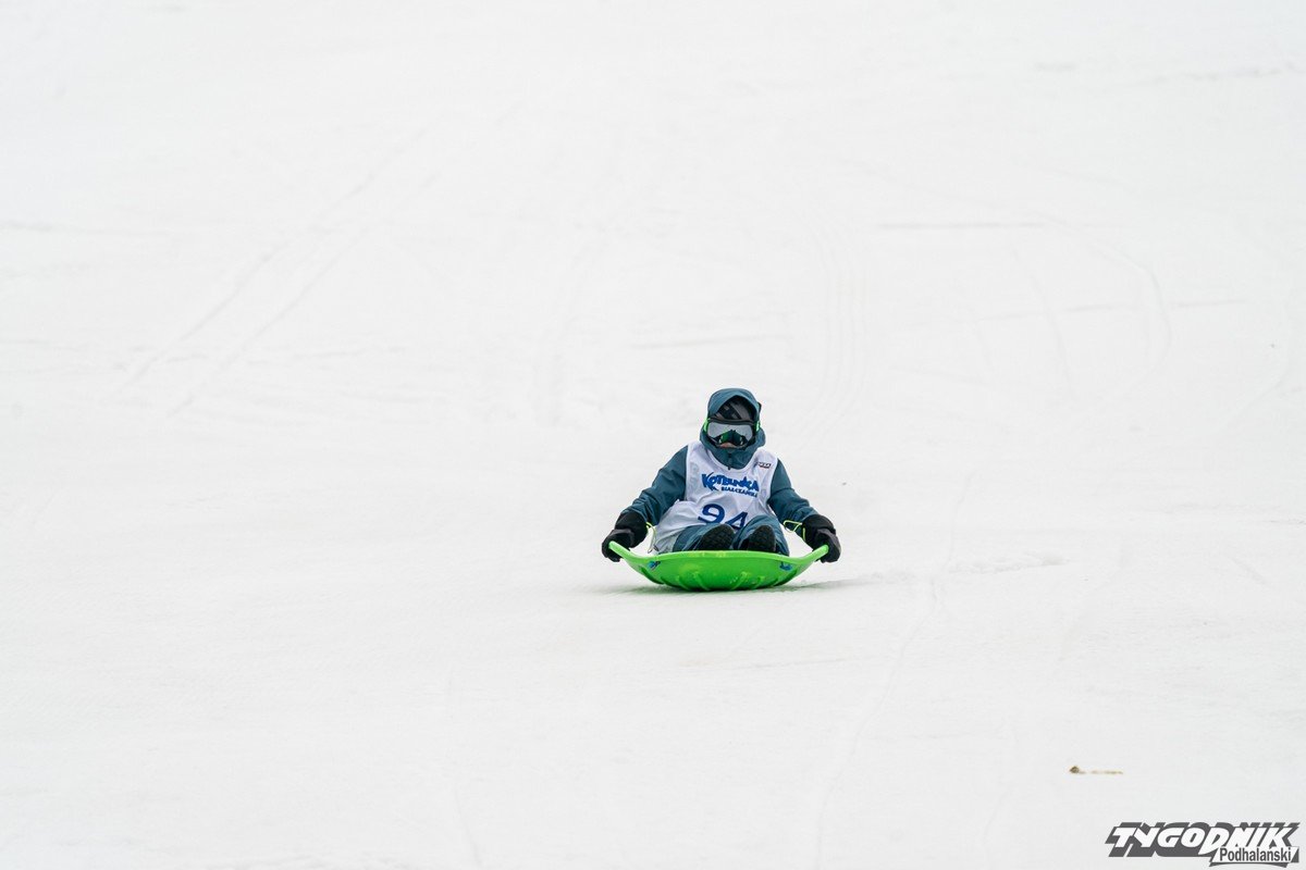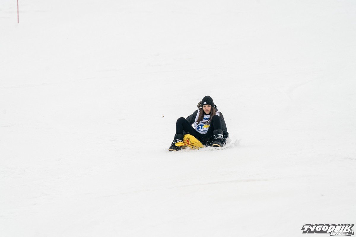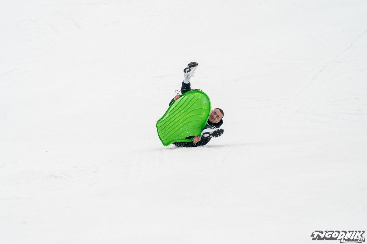 Rywalizacja toczyła się zarówno w narciarstwie zjazdowym, ale też w konkurencji … na cym fces. Tutaj mogliśmy podziwiać wyobraźnie uczestników w kwestiach doboru przyrządów do zjeżdżania na śniegu. Śmiechu było co niemiara