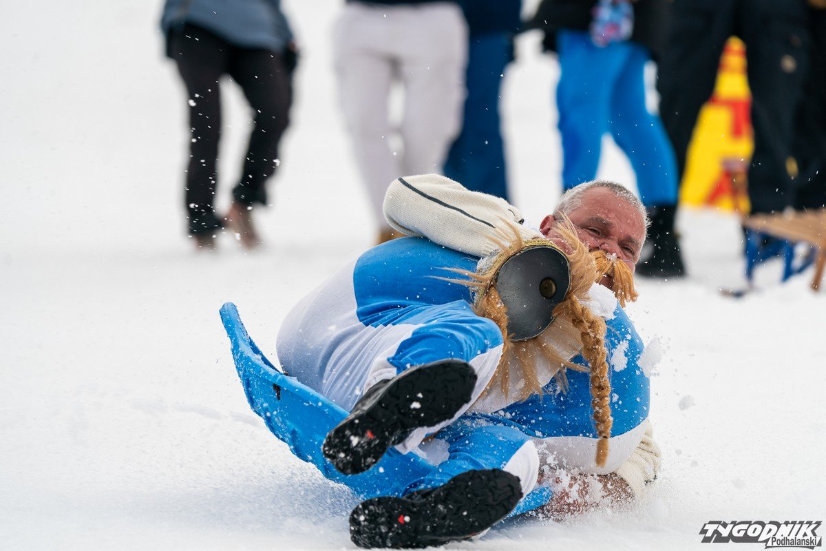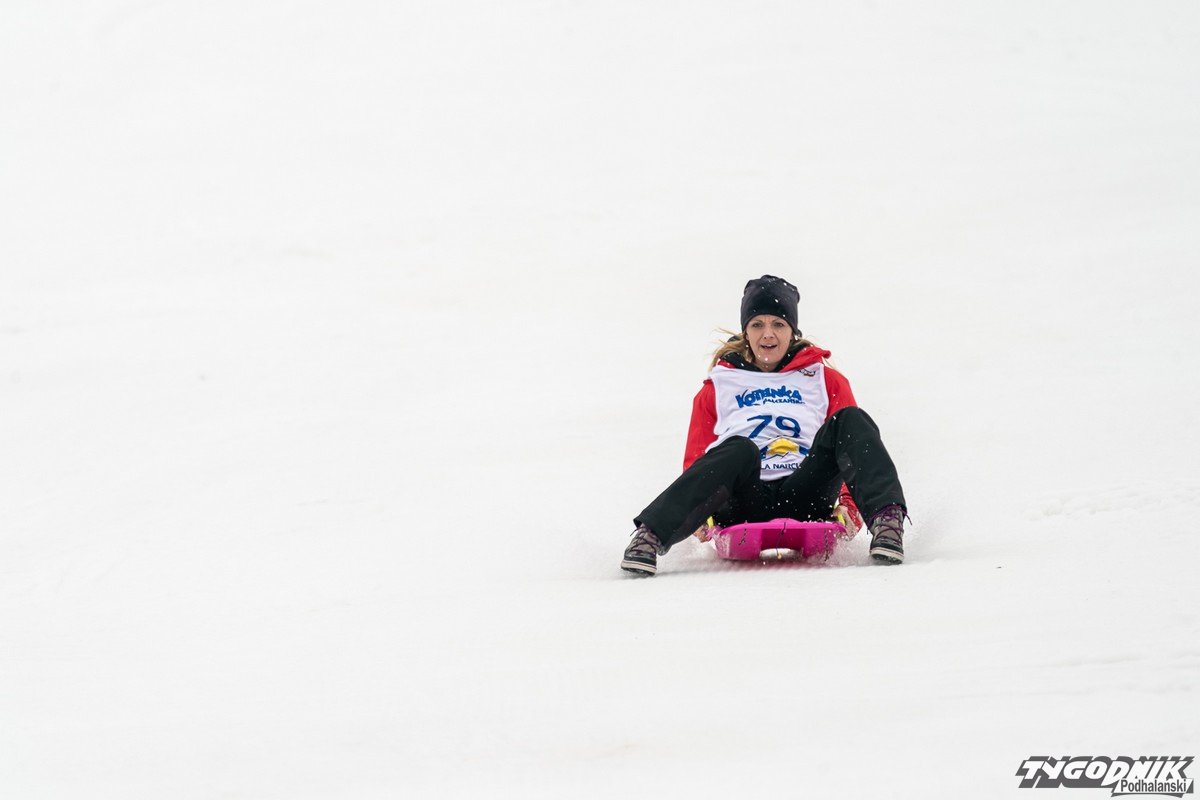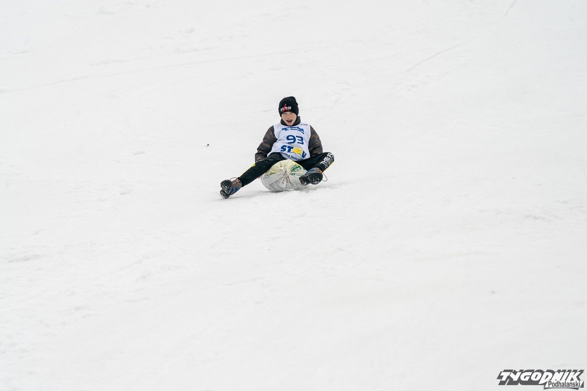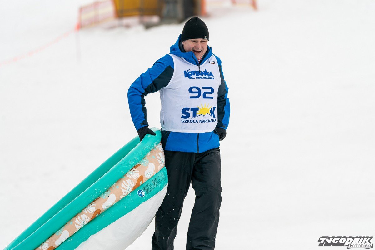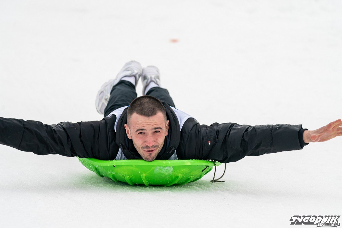Rywalizacja toczyła się zarówno w narciarstwie zjazdowym, ale też w konkurencji … na cym fces. Tutaj mogliśmy podziwiać wyobraźnie uczestników w kwestiach doboru przyrządów do zjeżdżania na śniegu. Śmiechu było co niemiara