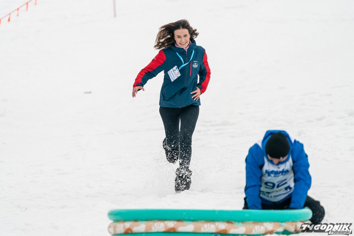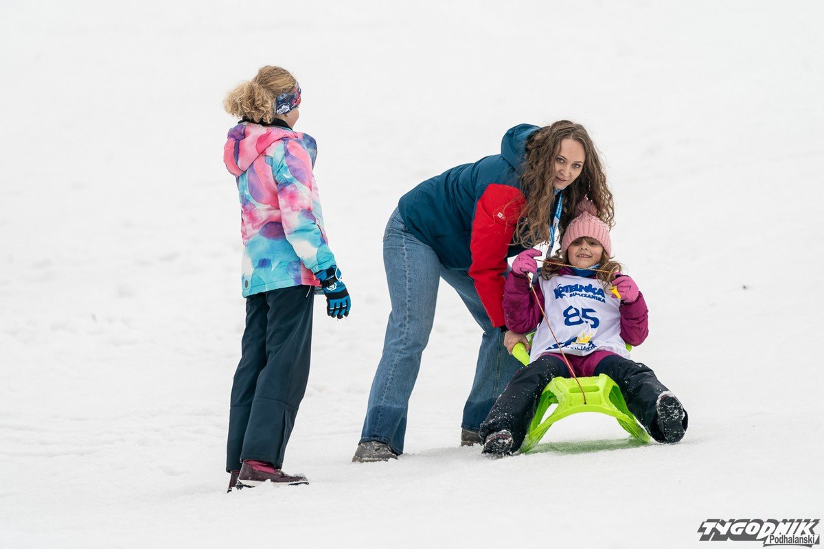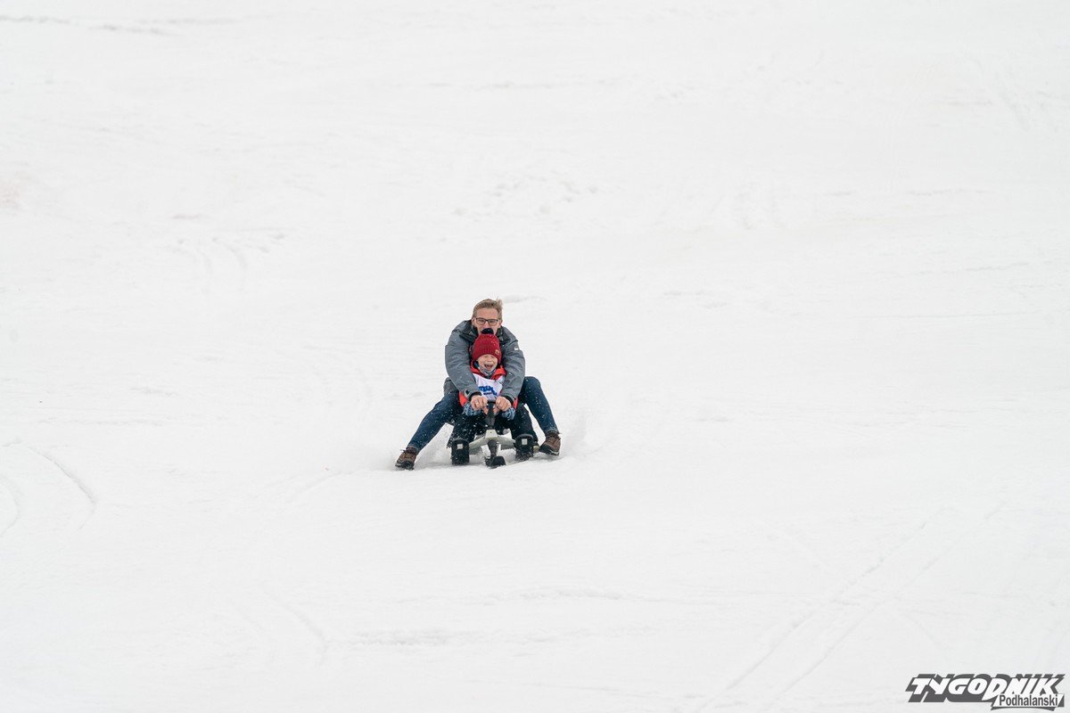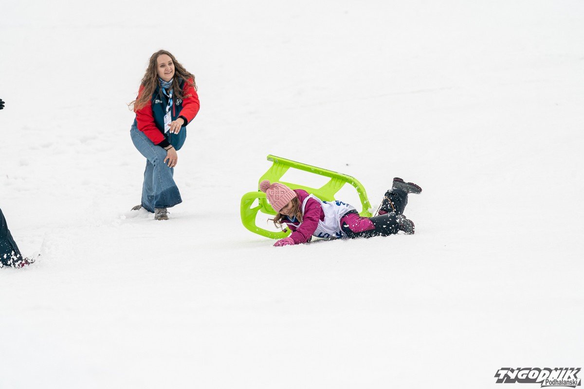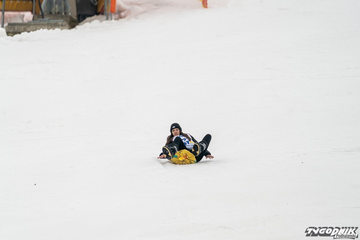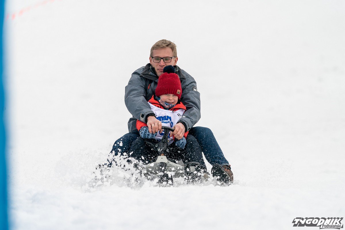 Rywalizacja toczyła się zarówno w narciarstwie zjazdowym, ale też w konkurencji … na cym fces. Tutaj mogliśmy podziwiać wyobraźnie uczestników w kwestiach doboru przyrządów do zjeżdżania na śniegu. Śmiechu było co niemiara