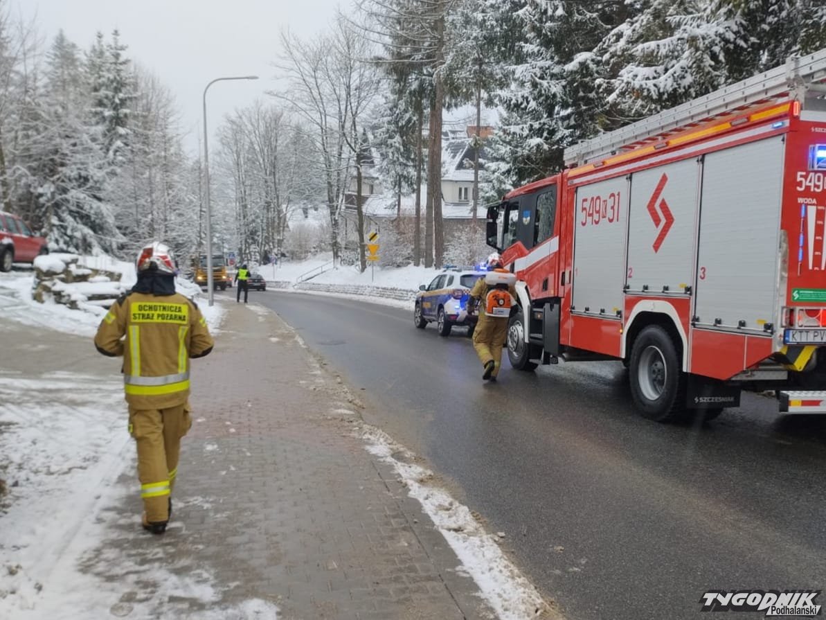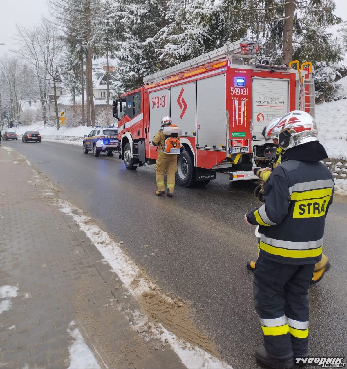 Druhowie Ochotniczej Straży Pożarnej musieli zlikwidować pozostałości po wycieku oleju, było bardzo ślisko.